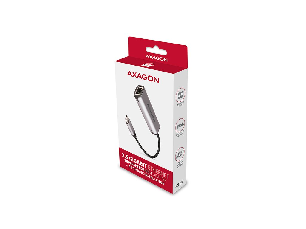 AXAGON ADE-25RC USB-A 3.2 Gen 1 - 2.5 Gigabit Ethernet síťová karta, Realtek 8156, auto install,šedá Axagon
