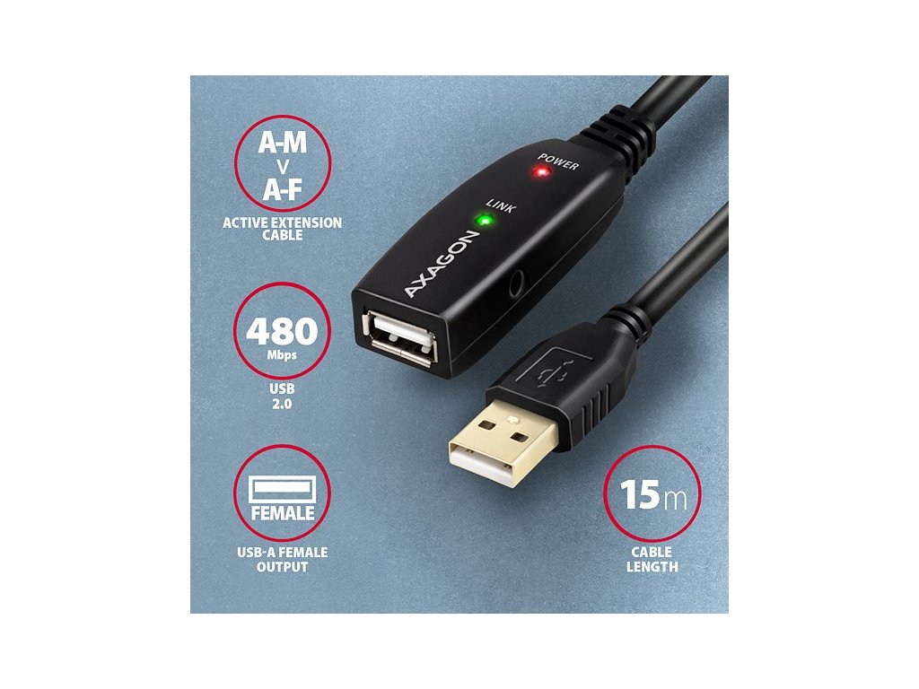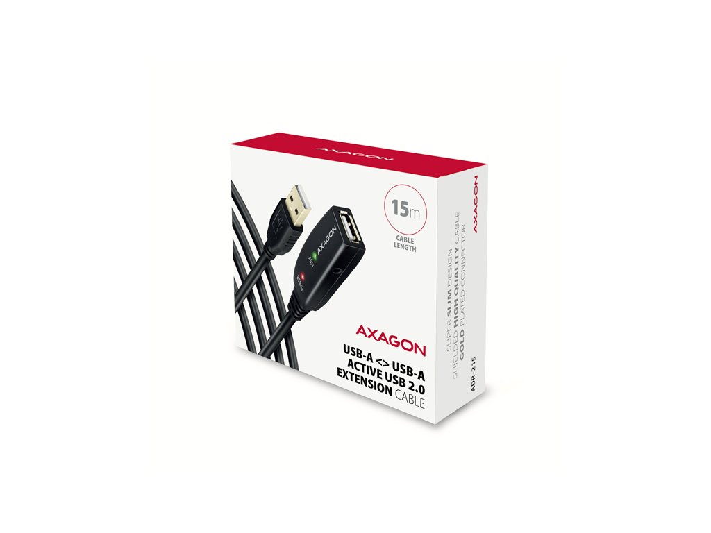 AXAGON ADR-215, USB 2.0 A-M -> A-F aktívny predlžovací / repeater kábel, 15m Axagon