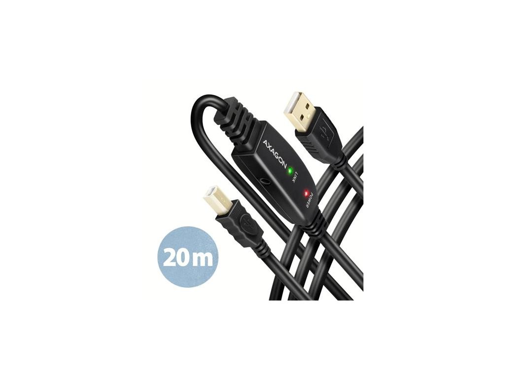 AXAGON ADR-220B, USB 2.0 A-M -> B-M aktívny prepojovací / repeater kábel, 20 m Axagon