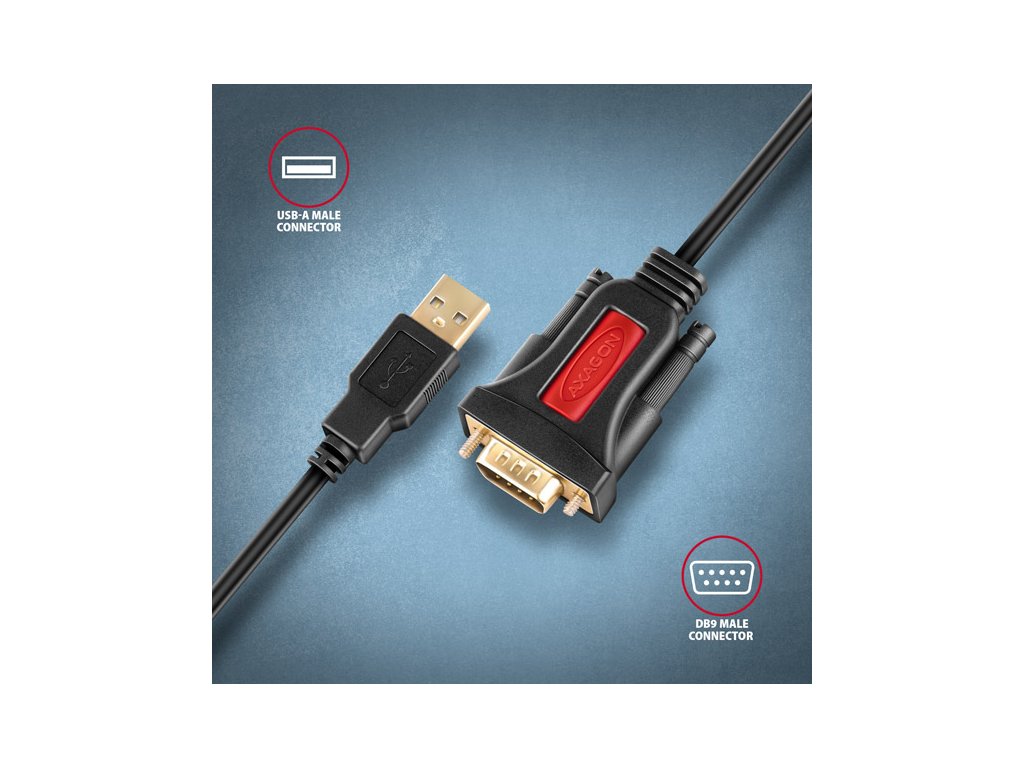 AXAGON ADS-1PSN, USB-A 2.0 - sériový RS-232 DB9-M Prolific adaptér / kábel 1.5m Axagon