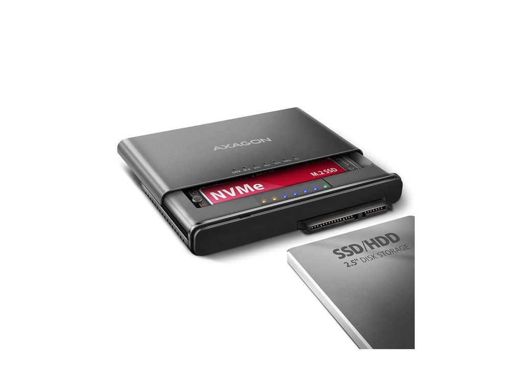 AXAGON ADSA-CC USB-C 10Gbps - NVMe M.2 SSD & SATA 2.5"/3.5" SSD/HDD CLONE MASTER 2 adaptér Axagon