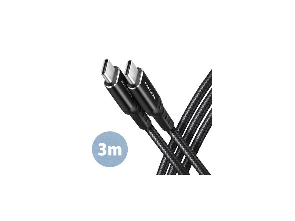 AXAGON BUCM-CM30AB, HQ kábel USB-C <-> USB-C, 3 m, USB 2.0, 3A, ALU, opletenie, čierny Axagon