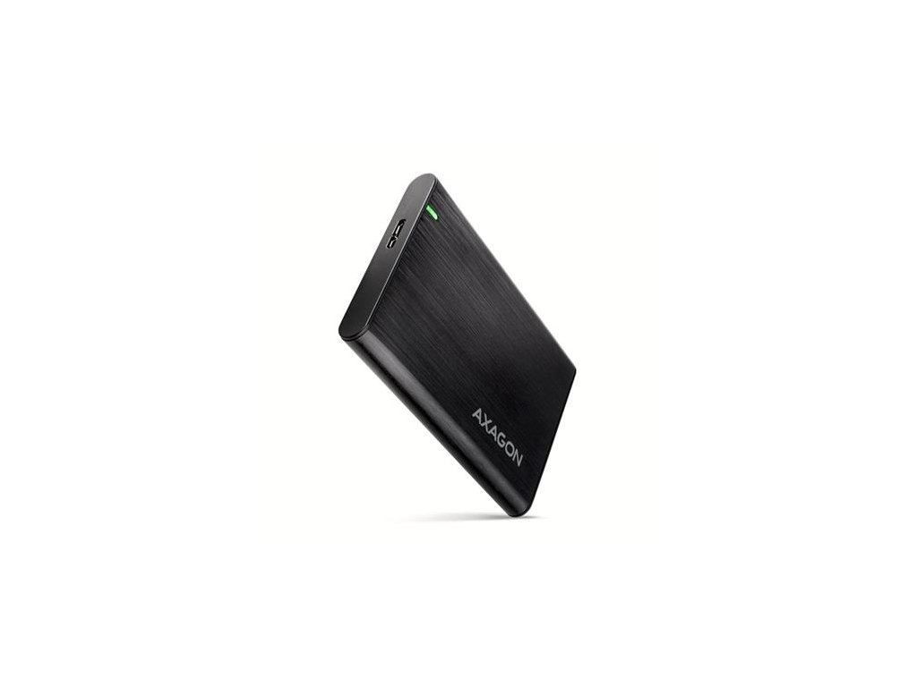 Bezšroubkový hliníkový externí AXAGON EE25-A6M RAW box s USB 3.2 Gen 1 (USB 3.0) rozhraním určený pro 2.5" SATA pevné disky nebo SSD. Připojení k počítači umožňuje USB Micro-B konektor na boxu spolu s dodávaným kabelem USB Micro-B -- USB-A.