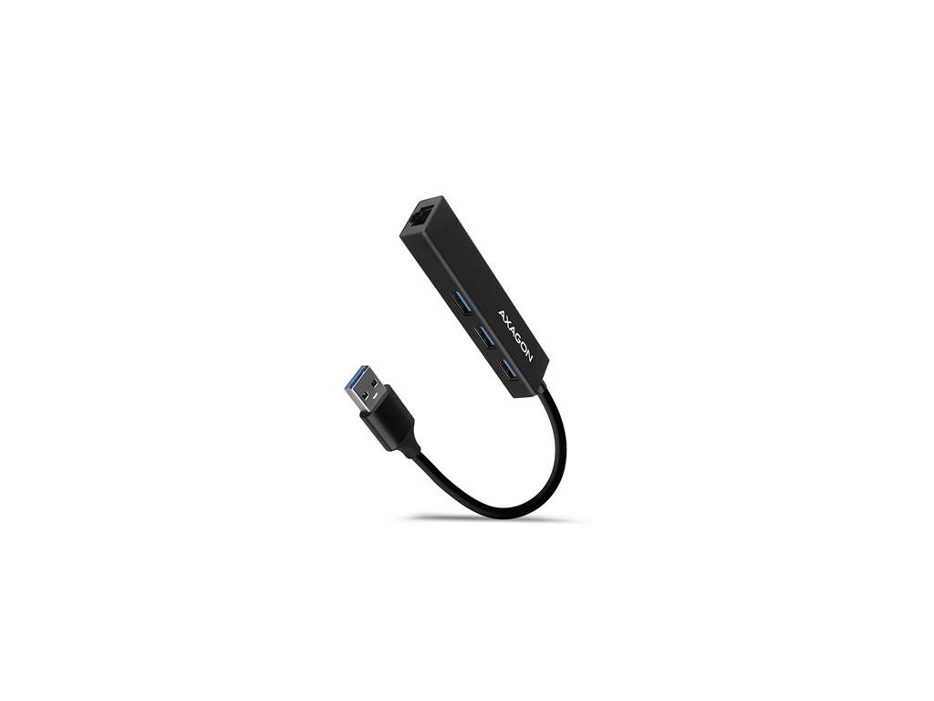 Štíhlý kovový USB 3.2 Gen 1 (USB 3.0) multi-port hub AXAGON HMA-GL3A nejen připojí k notebooku nebo počítači až tři USB zařízení současně, ale přidá také gigabitovou síťovou kartu, která připojí váš počítač k vysokorychlostní síti.