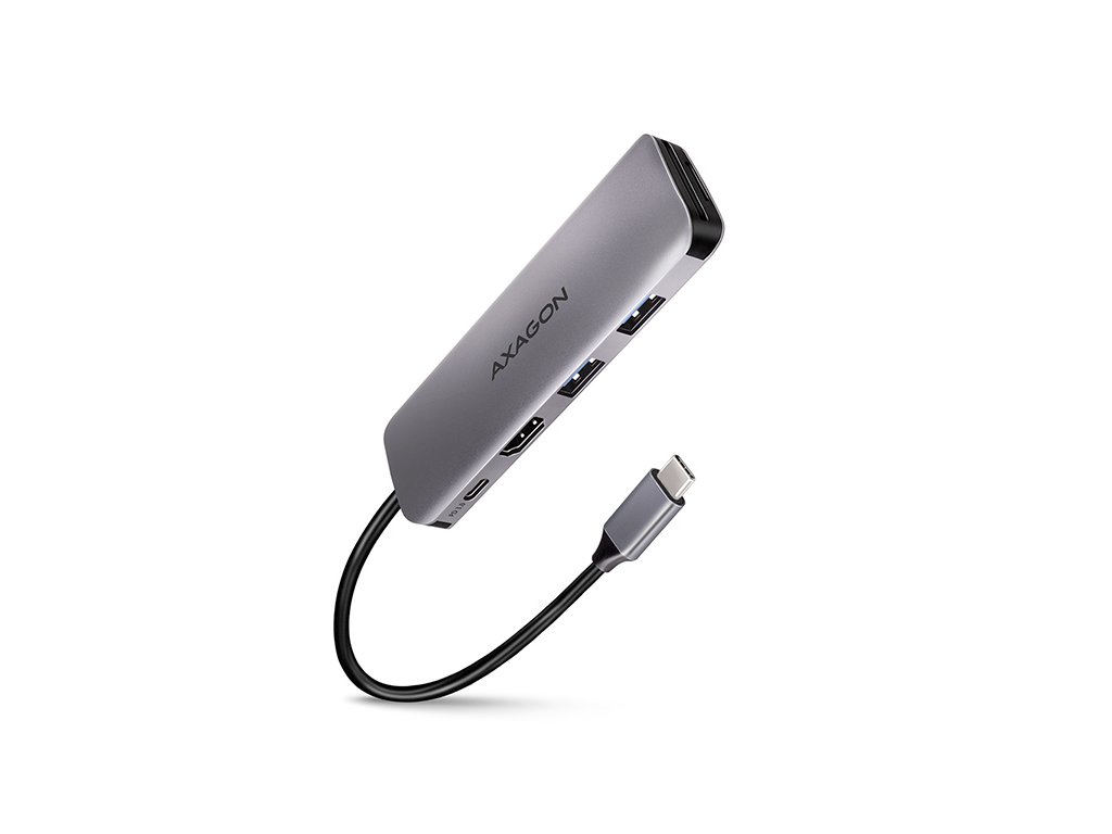 Multiportový USB-C 3.2 Gen 1 hub AXAGON HMC-5 rozšíří Váš notebook, počítač nebo telefon o čtveřici portů a čtečku paměťových karet SD / microSD. Přes oboustranný USB-C konektor snadno a rychle připojíte k počítači dvě USB zařízení, čtečku karet a HDMI zobrazovač současně. Zároveň získáte možnost napájení notebooku pomocí technologie Power Delivery. USB-C hub vám tak poskytne jednoduchou a skladnou dokovací stanici 5v1 k notebooku jako je například MacBook Pro. USB rozbočovač nabízí dva USB výstupy se standardními USB-A konektory. Hub také zvládne trvalé připojení několika externích disků současně. Díky rychlému USB 3.2 Gen 1 rozhraní je přenosová rychlost hubu až 5Gb/s. Hub dále umožní nabíjení telefonů a tabletů proudem až 1,5A/5V, z hubu tak snadno nabijete např. Android smartphone, Apple iPhone, Apple iPad apod. USB-C konektor je vyhrazen pouze pro napájení a současné dobíjení telefonů nebo notebooků pomocí technologie Power Delivery 3.0 výkonem až 100W. Do hubu zapojíte USB-C Power Delivery nabíječku a hub připojíte k notebooku. Tím také uvolníte jeden USB-C port. Podmínkou je notebook s podporou nabíjení z USB-C portu pomocí Power Delivery a vhodná PD nabíječka. HDMI výstup poskytuje kvalitní obraz až do rozlišení 4K/30Hz Ultra HD a podporuje přenos vícekanálového zvuku. Podporována jsou také oblíbená hráčská rozlišení WQHD 2560 x 1440 při 60Hz nebo FullHD 1920 x 1080 při 60, 100 a 120Hz max. Pro správné fungování video výstupu je nutné, aby USB-C port notebooku podporoval DisplayPort Alternate Mode (DP Alt Mode) nebo Thunderbolt 3. Čtečka karet podporuje všechny verze SD a microSD karet včetně SDXC a microSDXC s kapacitou až 2TB. Vysoké přenosové rychlosti jsou zajištěny USB 3.2 Gen 1 rozhraním. Card reader umožňuje současnou práci s kartami v obou slotech a přímé kopírování mezi nimi. Elegantní hliníkové tělo zajistí nejen mechanickou odolnost, ale i kvalitní chlazení. Potěší také jemně strukturovaný povrch, na kterém nezůstávají otisky prstů. Replikátor portů je ideálním doplňkem pro notebooky bez USB-A konektorů, čtečky karet a video výstupu. V hubu lze využít Vaše stávající USB periferie bez nutnosti pořizování nových. Díky funkcím Plug and Play a Hot Plug je samotné zapojení hubu velmi jednoduché bez složité instalace a také lze jednoduše připojovat a odpojovat periferie za běhu počítače. Rozbočovač se nezalekne ani připojení k telefonům s USB-C konektorem. K telefonu tak připojíte například flash disk, klávesnici, myš, monitor, TV nebo projektor. Vstup: • 1x USB 3.2 Gen 1 / SuperSpeed USB port, konektor USB-C male. • Zpětně kompatibilní s USB 3.1 Gen 1 / USB 3.0 a USB 2.0. • Kompatibilní s Thunderbolt 3. • Připojovací USB konektor typu C male (samec) umístěn na napevno uchyceném 20 cm kabelu. Výstupy USB: • 2x SuperSpeed USB port, konektor USB-A female. • 1x USB type C Power Delivery port (jen nabíjení), konektor USB-C female. • Podpora přenosových rychlostí 5.000 / 480 / 12 / 1.5 Mb/s (SuperSpeed / High / Full / Low speed). • Celková propustnost / přenosová rychlost je dána použitým USB 3.2 Gen 1 rozhraním (teoreticky až 5 Gbit/s). • USB-C hub zvládne připojení několika externích disků současně. • Nabíjení mobilních zařízení (včetně iPad) proudem až 1.5A v každém z USB portů hubu. Celkový nabíjecí proud (který se dělí na porty) dosahuje až 2.5A při napětí 5V (záleží na možnostech USB portu počítače). Výstup HDMI: • HDMI. • Konektor HDMI A (F) female. • Maximální podporované rozlišení 4K / 4096 x 2160 při 30 Hz. • WQHD rozlišení 2560 x 1440 při 60 Hz max. • FullHD rozlišení 1920 x 1080 při 60, 100, 120 Hz max. • Pro funkci video výstupu je nutné hub zapojit do USB-C portu s podporou DisplayPort Alternate Mode (DP Alt Mode) nebo do USB-C portu s podporou Thunderbolt 3. Dále je nutný vhodný OS. Bez této podpory nebude funkce video výstupu dostupná. • Podpora HPD (Hot-Plug-Detect). • Podpora TMDS (Transition Minimized Differential Signaling). • Plná podpora HDCP 1.4 a 2.3 (High-bandwidth Digital Content Protection). • Podpora až 8kanálového LPCM zvuku, komprimovaného audia (AC-3, DTS) a HBR audio formátů. • Podpora vzorkovací frekvence až 192 kHz a až 24bitového zvuku – závisí na zdrojovém a koncovém zařízení, tj. notebooku/telefonu a TV/monitoru/AV receiveru. Čtečka karet - dva sloty: • slot Micro SD: microSD / microSDHC / microSDXC / TransFlash, • slot SD: SecureDigital / SDHC / SDXC, MultiMedia Card, MMC 4.0, MMC Dual Voltage, MMC mobile, RS-MMC, s adaptérem - miniSD, microSD / microSDHC / microSDXC, MMC Micro. Čtečka podporuje tyto specifikace flash karet: • SD 1.0/1.1 (SD - Secure Digital, až 2GB). • SD 2.0 (SDHC - Secure Digital High Capacity, až 32GB). • SD 3.0 (SDXC - Secure Digital eXtended Capacity, až 2TB). • MMC a eMMC 3.x /4.0 / 4.1 / 4.2 / 4.3 / 4.4 / 4.5 / 5.0 (8-bit). • Podpora SD 3.01 a SD Jukebox aplikace (CPRM funkce). • Podpora Ultra High Speed bus UHS-I (SDR12/SDR25/SDR50/DDR50/SDR104) rychlost až 104 MB/s. • Podpora hardware ECC (Error Correction Code) funkce a CRC (Cyclic Redundancy Check) funkce. • 2 LUN - v souborových manažerech se čtečka indikuje jako dvě diskové jednotky. • Podpora souborových formátů FAT 12/16/32, NTFS, exFAT (FAT 64). Power Delivery: • Podpora Power Delivery 3.0 - průchozí napájení zařízení ze síťového adaptéru přes USB-C hub. • Maximální výkon napájení přes PD USB-C výstup hubu 100W - 20V/5A. • Nutná podpora PD ze strany zařízení (notebooku, telefonu) a vhodný PD síťový adaptér. Další vlastnosti: • Možnost připojení zařízení za chodu díky podpoře Hot Plug. • Plná podpora Plug and Play. • Podp