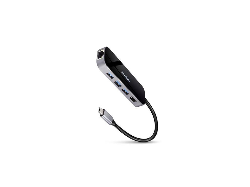 AXAGON HMC-6GL, USB 3.2 Gen 1 hub, porty 3x USB-A, HDMI, RJ-45 GLAN, USB-C PD 60W, kabel USB-C 20cm Axagon
