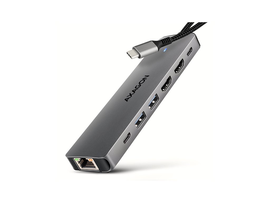 Multiportový USB-C 5Gbps AXAGON HMC-7HX2 DUAL 4K DISPLAY 7in1 hub rozšíří váš notebook, počítač nebo telefon o sedm portů. Váš notebook připojíte k hubu přes 15 cm dlouhý USB-C kabel. Okamžitě tak máte k dispozici připojení pro dva 4K monitory, tři USB zařízení a konektor RJ-45 pro Gigabitovou ethernet síť. Zároveň získáte možnost napájení notebooku pomocí technologie Power Delivery. Replikátor portů vám poskytne jednoduchou a skladnou dokovací stanici 7v1 pro moderní notebooky. USB rozbočovač nabízí tři USB 5Gbps výstupy, dva se standardním USB-A a třetí s USB-C datovým konektorem. Díky USB 3.2 Gen 1 rozhraní je přenosová rychlost hubu až 5Gb/s. Hub zvládne trvalé připojení několika externích disků současně a také dovolí nabíjení telefonů a tabletů proudem až 1.5A/5V. Z hubu tak snadno nabijete např. Android smartphone, Apple iPhone, Apple iPad apod. Další z USB-C konektorů je vyhrazen pouze pro nabíjení telefonů nebo notebooků pomocí technologie Power Delivery 3.0 výkonem až 100W. Do hubu zapojíte vhodnou USB-C Power Delivery nabíječku a hub připojíte k notebooku s podporou Power Delivery. Tím také uvolníte jeden USB-C port. Dva HDMI výstupy umožňují připojení externích monitorů, TV nebo projektorů s rozlišením až 4K/60Hz Ultra HD, a to i při zapojení dvou monitorů najednou. Podporována jsou také další oblíbená rozlišení, například 2K/120Hz Quad HD nebo 1080p/240Hz Full HD a přenos vícekanálového zvuku. Díky podpoře HDR si můžete vychutnat výrazně rozšířený rozsah barev a kontrastů. Gigabitová síťová karta rozšíří počítač o rychlé a stabilní síťové připojení, doplní chybějící síťový RJ-45 Ethernet konektor, nebo přidá další síťovou kartu. Kompaktní hliníkové tělo nejen skvěle vypadá, ale zajistí i mechanickou odolnost a pasivní chlazení. USB-C hub je ideálním doplňkem pro notebooky bez USB-A konektorů a video výstupu. Lze tak využít Vaše stávající USB periferie bez nutnosti pořizování nových. Díky funkcím Plug and Play a Hot Plug je samotné zapojení hubu velmi jednoduché bez složité instalace, a také lze jednoduše připojovat a odpojovat periferie za běhu počítače. Pro správnou funkci hubu je nutné, aby USB-C port vašeho notebooku podporoval video výstup (DisplayPort Alternate Mode nebo Thunderbolt 3, 4 a vyšší) a Power Delivery napájení. Rozbočovač bez problému zvládne připojení k telefonům s USB-C konektorem. K telefonu tak můžete připojit například flash disk, klávesnici, myš, monitor, televizi nebo projektor. Vstup (připojení k počítači, tabletu nebo telefonu): • USB 5Gbps (USB 3.2 Gen 1 / USB 3.0), konektor USB-C male. • Kompatibilní s USB 10Gbps, USB4, Thunderbolt 3/4/5. Vstup (napájení): • USB Power Delivery 3.0 - 100W port, konektor USB-C female. • Napájení notebooku ze síťového adaptéru přes USB-C hub. • Napájení PD musí podporovat jak notebook (tablet, telefon), tak síťová nabíječka. Výstupy USB: • 2x USB 5Gbps port, konektor USB-A female. • 1x USB 5Gbps port, konektor USB-C female. • USB-C hub zvládne připojení několika externích disků současně. • Nabíjení mobilních zařízení (včetně iPad) proudem až 1.5A/5V z USB-A a USB-C portů hubu. Výstup video: • 2x HDMI port, konektor HDMI A female. Maximální podporované rozlišení: • 1 monitor - až 4K/60Hz Ultra HD, 2K/144Hz Quad HD, 1080p/240Hz Full HD. • 2 monitory - až 4K/60Hz Ultra HD, 2K/144Hz Quad HD, 1080p/240Hz Full HD. Vlastnosti videa: • U zařízení Apple s macOS je maximální obnovovací frekvence většinou omezena na 60Hz. • Pro dosažení maximálních hodnot rozlišení a frekvencí na video výstupech je nutné hub zapojit do USB-C portu s podporou DisplayPort Alternate Mode (DP Alt Mode) verze min. 1.4 nebo do USB-C portu s podporou min. Thunderbolt 3. Dále je nutný vhodný aktualizovaný OS a aktuální grafické ovladače. • Podpora HDR (High Dynamic Range, 10 bit support) - realistická reprodukce světlých a tmavých detailů. • Podpora HPD (Hot-Plug-Detect). • Podpora TMDS (Transition Minimized Differential Signaling). • Plná podpora HDCP 1.4 a 2.2 (High-bandwidth Digital Content Protection). • Podpora 8kanálového LPCM zvuku, komprimovaného audia (AC-3, DTS) a HBR audio formátů. • Podpora vzorkovací frekvence až 192 kHz a až 24bitového zvuku – závisí na zdrojovém a koncovém zařízení, tj. notebooku/telefonu a TV/monitoru/AV receiveru. Výstup RJ-45: • Rozhraní Gigabit Ethernet s RJ-45 konektorem pro připojení UTP nebo STP kabelem. • Podporované přenosové rychlosti Ethernet rozhraní 10/100/1000 Mb/s. • Podporované specifikace IEEE 802.3i 10Base-T, IEEE 802.3u 100Base-TX, IEEE 802.3ab 1000Base-T. • 10/100/1000 Mb/s autodetekce. Další vlastnosti: • Možnost připojení zařízení za chodu díky podpoře Hot Plug. • Plná podpora Plug and Play. • Podpora úsporného režimu. • Napájení prostřednictvím USB sběrnice - USB bus power. • Napájení přes PD nabíječku (není součástí balení). • Kvalitní stíněný kabel zaručuje vysokou rychlost komunikace a minimální nežádoucí interference. • Rozměry 13 x 134 x 34 mm (V x Š x H). • Hmotnost 59 g (vč. kabelu). • USB-C kabel délky 15 cm pro připojení hubu k notebooku. Podporované operační systémy: • Windows 10 / 11, macOS, iPadOS, iOS, Linux, Chrome OS a Android. • Kompatibilita je závislá na používaném operačním systému a podpoře od výrobce zařízení. • DisplayPort Alternate Mode (DP Alt Mode) je podporovaný pouze v aktualizovaných operačních systémech a dále závisí na podpoře ze strany zařízení (notebooku, tabletu, telefonu). • Na správnou funkci produktu mohou mít také vliv ovladače grafické karty. Doporučujeme stáhnout nejnovější verzi o