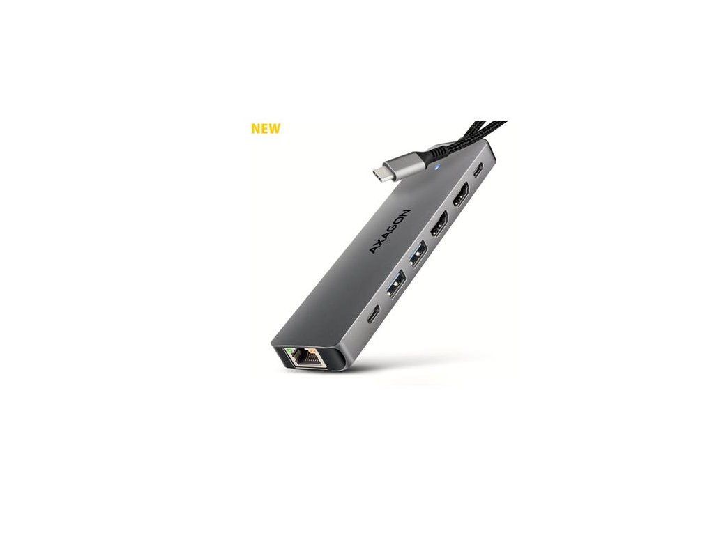 AXAGON HMC-7HX2, USB 5Gbps hub, 2x USB-A, USB-C, 2x HDMI 4k/60Hz, RJ-45 GLAN, PD 100W, kábel USB-C 15cm Axagon