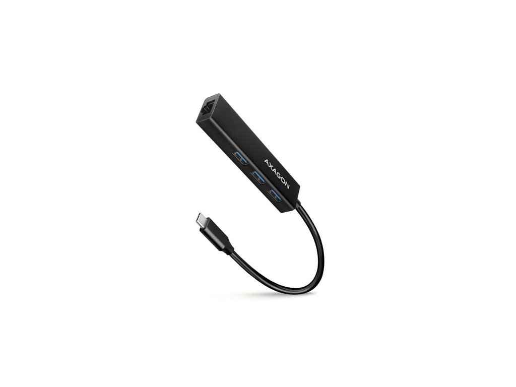AXAGON HMC-GL3A, USB 3.2 Gen 1 hub, porty 3x USB-A + Gigabit Ethernet, kovový, kabel USB-C 20cm Axagon