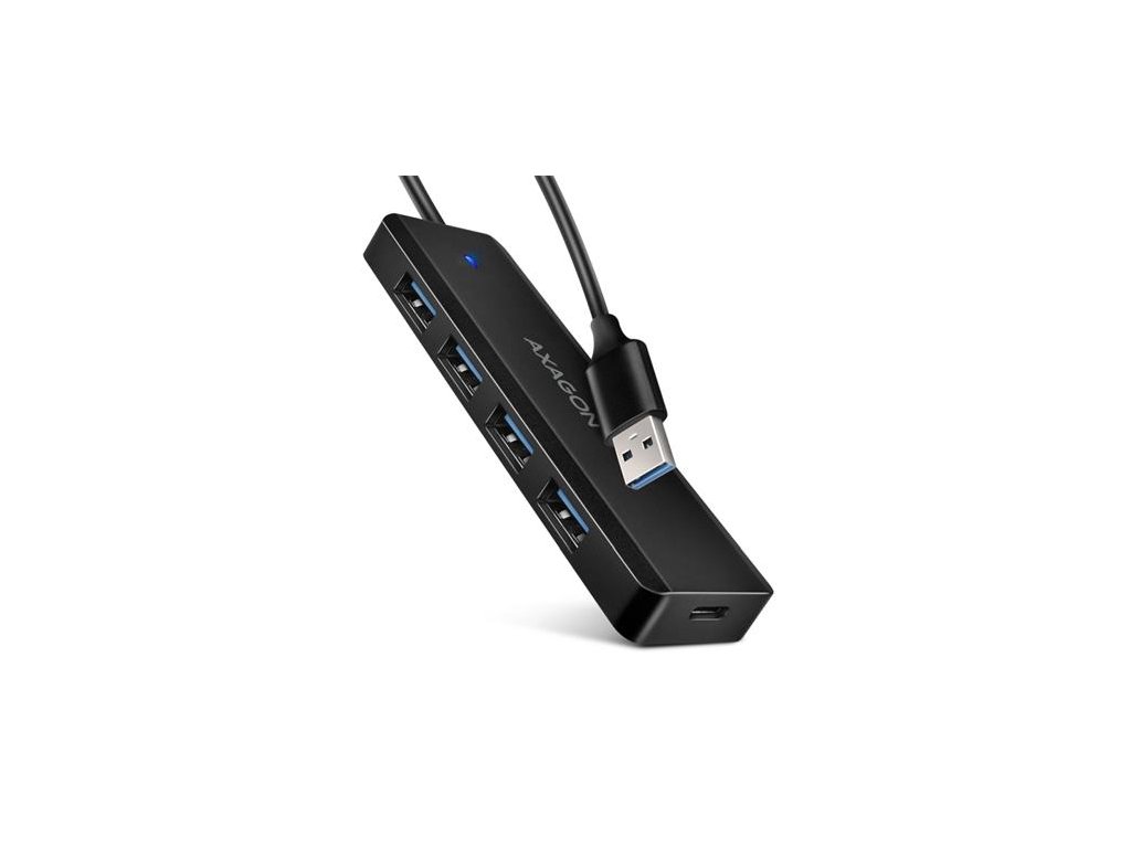 AXAGON HUE-C1A, 4x USB 5Gbps TRAVEL hub, USB-C napájací konektor, kábel USB-A 19cm Axagon