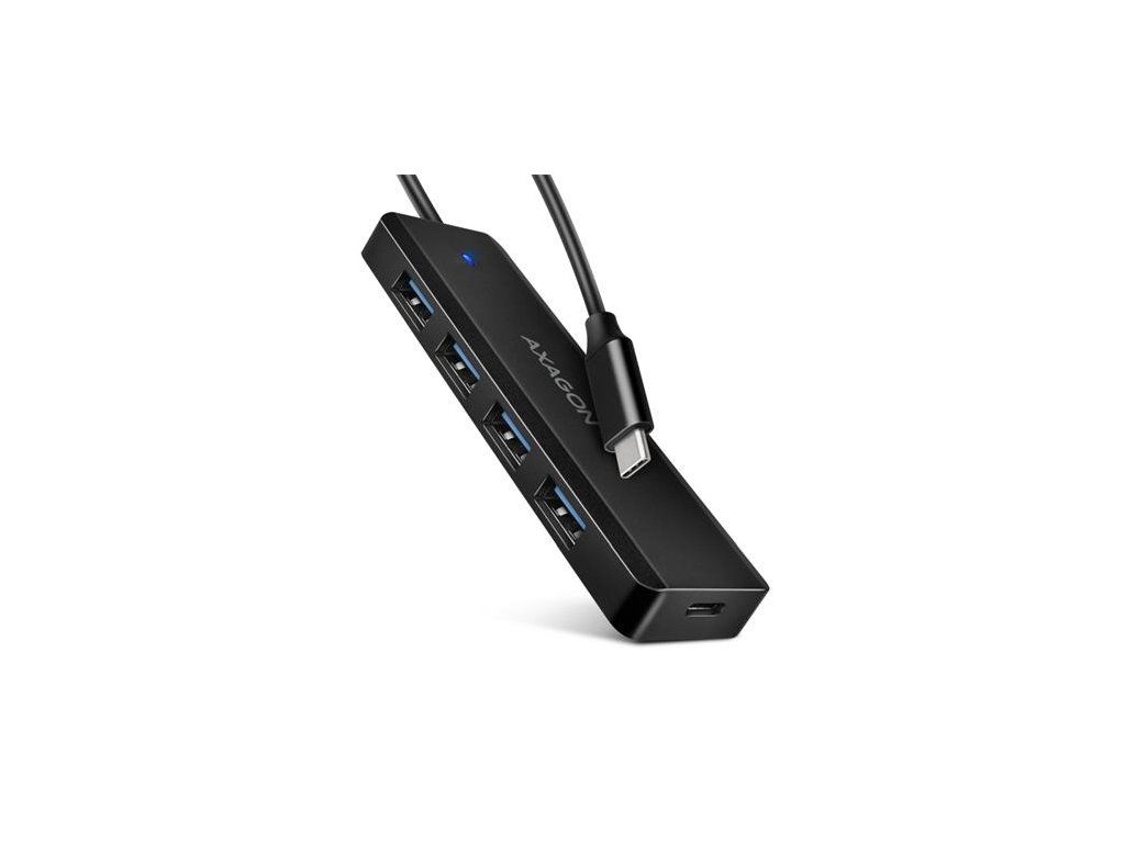 AXAGON HUE-C1C, 4x USB 5Gbps TRAVEL hub, USB-C napájací konektor, kábel USB-C 19 cm Axagon