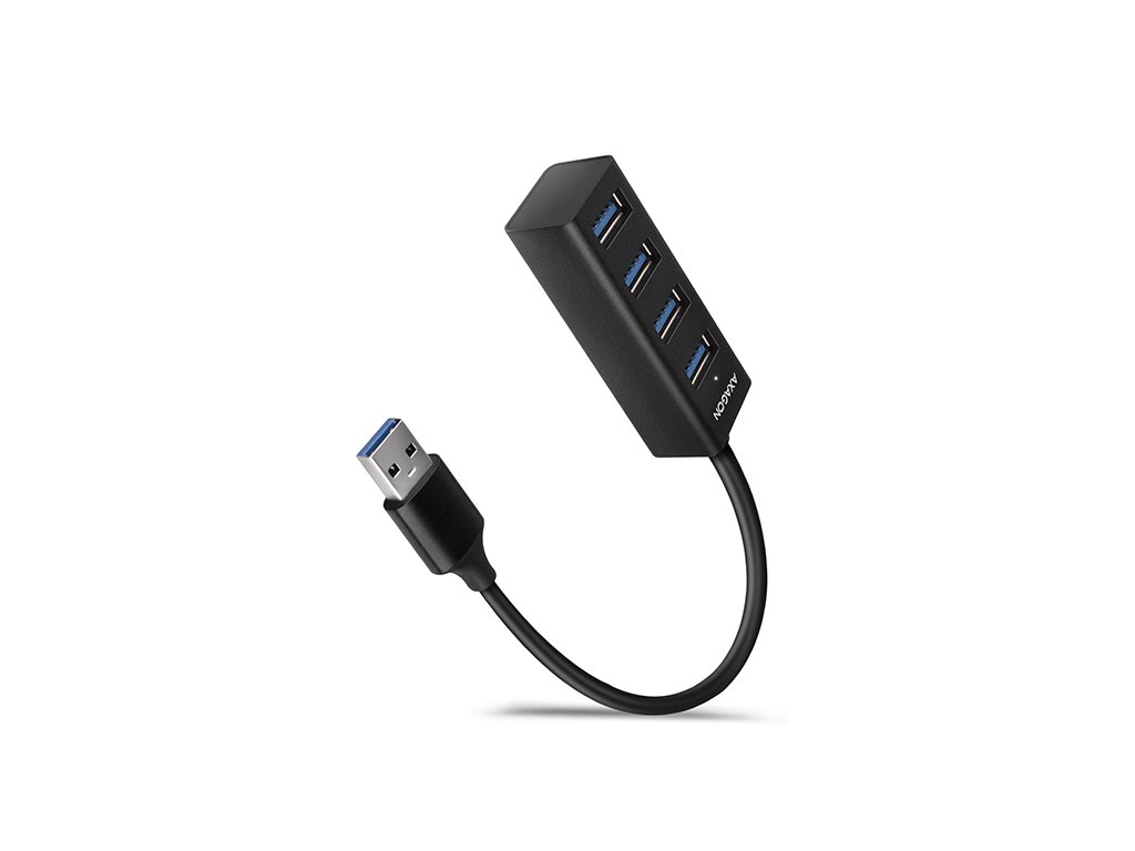 Miniaturní kovový USB 3.2 Gen 1 (USB 3.0) hub AXAGON HUE-M1A snadno a rychle připojí k notebooku nebo počítači až čtyři USB zařízení současně. Kovové tělo hubu je vyrobeno z hliníku a zajišťuje tak dokonalou mechanickou ochranu pro časté přenášení. Elegantní, jemně strukturovaný povrch brání nežádoucím otiskům. Gumové nožky zabraňují klouzání hubu po stole. Napevno uchycený USB kabel délky 20 cm je ideální pro uživatele mobilních zařízení. Tento malý cestovní hub také zvládne trvalé připojení několika externích disků. Díky rychlému USB 3.2 Gen 1 rozhraní je přenosová rychlost až 5Gb/s. Hub dále umožní nabíjení telefonů a tabletů proudem až 1,5A/5V, z hubu tak snadno nabijete např. Android smartphone, Apple iPhone, Apple iPad apod. USB hub je ideálním doplňkem pro ultrabooky s malým počtem USB-A portů. Rozbočovač se nezalekne ani připojení k telefonům pomocí vhodné redukce OTG nebo USB-A > USB-C. K telefonu nebo tabletu tak připojíte například flash disk, klávesnici a myš. Vstup: • 1x USB 3.2 Gen 1 / SuperSpeed USB port, konektor USB-A male. • Zpětně kompatibilní s USB 3.1 Gen 1 / USB 3.0 / USB 2.0 a USB 1.1. • Připojovací USB konektor typu A male (samec) umístěn na napevno uchyceném 20 cm kabelu. Výstupy: • 4x SuperSpeed USB port, konektory USB-A female. • Podpora přenosových rychlostí 5.000 / 480 / 12 / 1.5 Mb/s (SuperSpeed / High / Full / Low speed). • Celková propustnost / přenosová rychlost je dána použitým USB 3.2 Gen 1 rozhraním (teoreticky 5 Gbit/s). • USB hub zvládne připojení několika externích disků současně. Vlastnosti: • Možnost připojení zařízení za chodu díky podpoře Hot Plug. • Plná podpora Plug and Play. • Podpora úsporného režimu. • Kvalitní stíněný kabel zaručuje vysokou rychlost komunikace a minimální nežádoucí interference. • Bílá LED indikuje připojení hubu k počítači. • Napájení po USB sběrnici (USB bus power). • Rozměry 70 x 24 x 18 mm. • Hmotnost 35 g (vč. kabelu). • Délka USB kabelu 20 cm. Napájení/Nabíjení: • Napájení po USB sběrnici je dostatečné pro připojení USB zařízení s nízkým odběrem (myš, klávesnice, čtečka karet, flash disk apod.) nebo vlastním napájením (tiskárna, skener, 3.5'' externí disk) do všech čtyř portů. • USB hub také zvládne trvalé připojení několika externích disků současně. • Nabíjení mobilních zařízení (včetně iPad) proudem až 1.5A v každém z portů hubu. Celkový nabíjecí proud (který se dělí na porty) dosahuje až 2,8A při napětí 5V (záleží na možnostech USB portu počítače). Podporované operační systémy: • MS Windows XP / Vista / 7 / 8 / 8.1 / 10 a novější, Windows Server 2003 / 2008 / 2012 / 2016 a novější (podporovány všechny 32- i 64-bitové verze OS Windows), Mac OS X 10.4.x a vyšší, Linux s jádrem 2.6.x a vyšším, Android většina verzí. Pozn.: Ovladače jsou součástí podporovaných operačních systémů a nainstalují se zcela automaticky. Žádné jiné ovladače není třeba instalovat a nejsou ani k dispozici. Balení v kartonové krabičce s otvorem pro zavěšení obsahuje: • SuperSpeed USB rozbočovač s kabelem napevno délky 20 cm, • multijazyčný manuál CZ/DE/DK/ENG/ESP/FIN/FR/GR/HR/HU/IT/NL/PL/PT/RO/RU/SK/SWE/BG/CN/TR/ARA.