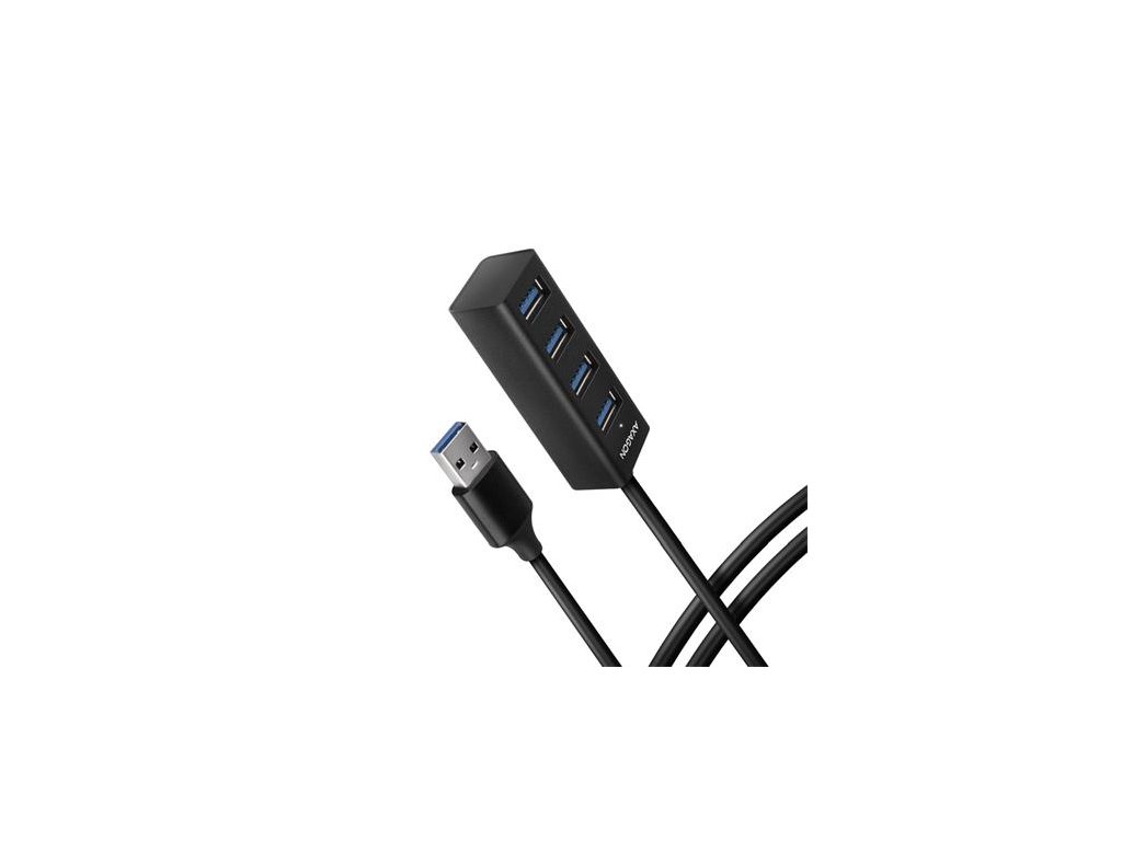 Miniaturní kovový USB 3.2 Gen 1 (USB 3.0) hub AXAGON HUE-M1AL s USB kabelem dlouhým 1.2m snadno a rychle připojí k počítači až čtyři USB zařízení současně.