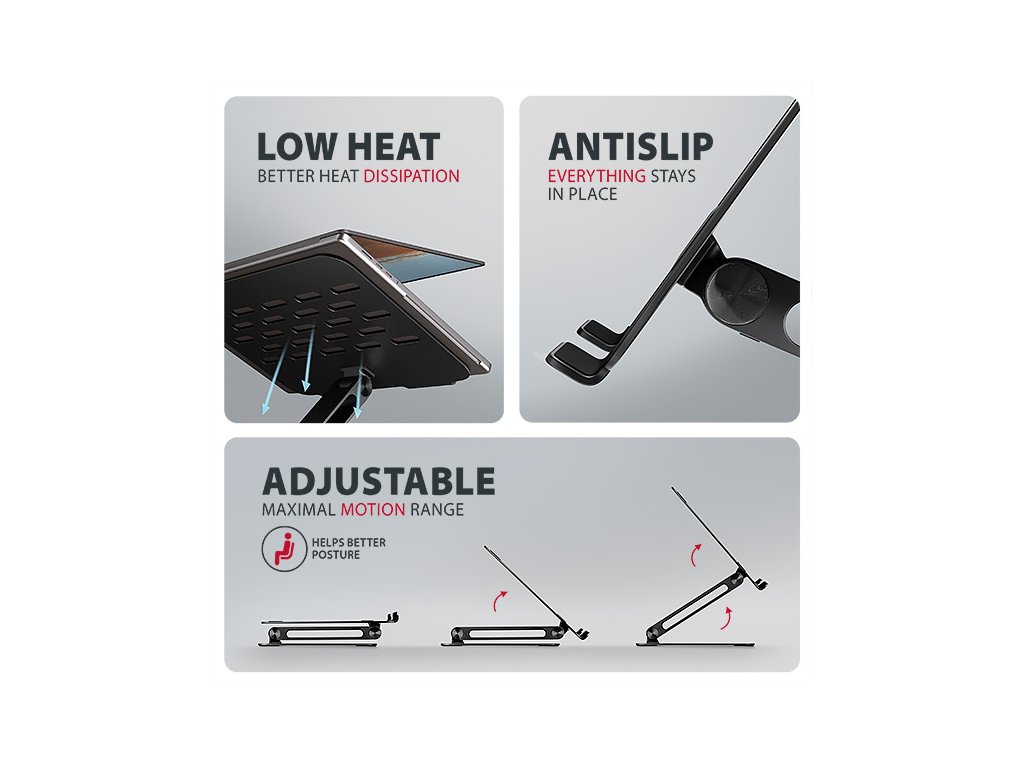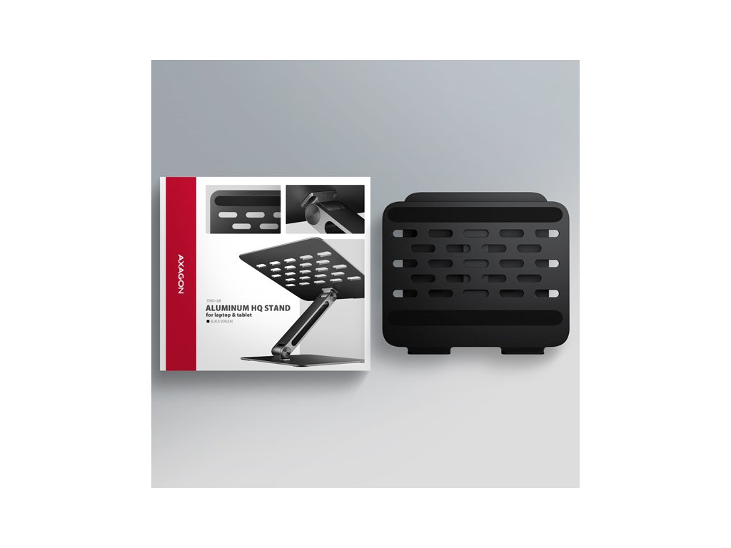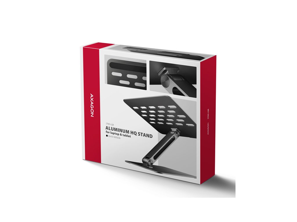 AXAGON STND-LQB, hliníkový HQ stojan pro notebooky 10"-17.3", nastavitelná výška a úhel, černý Axagon