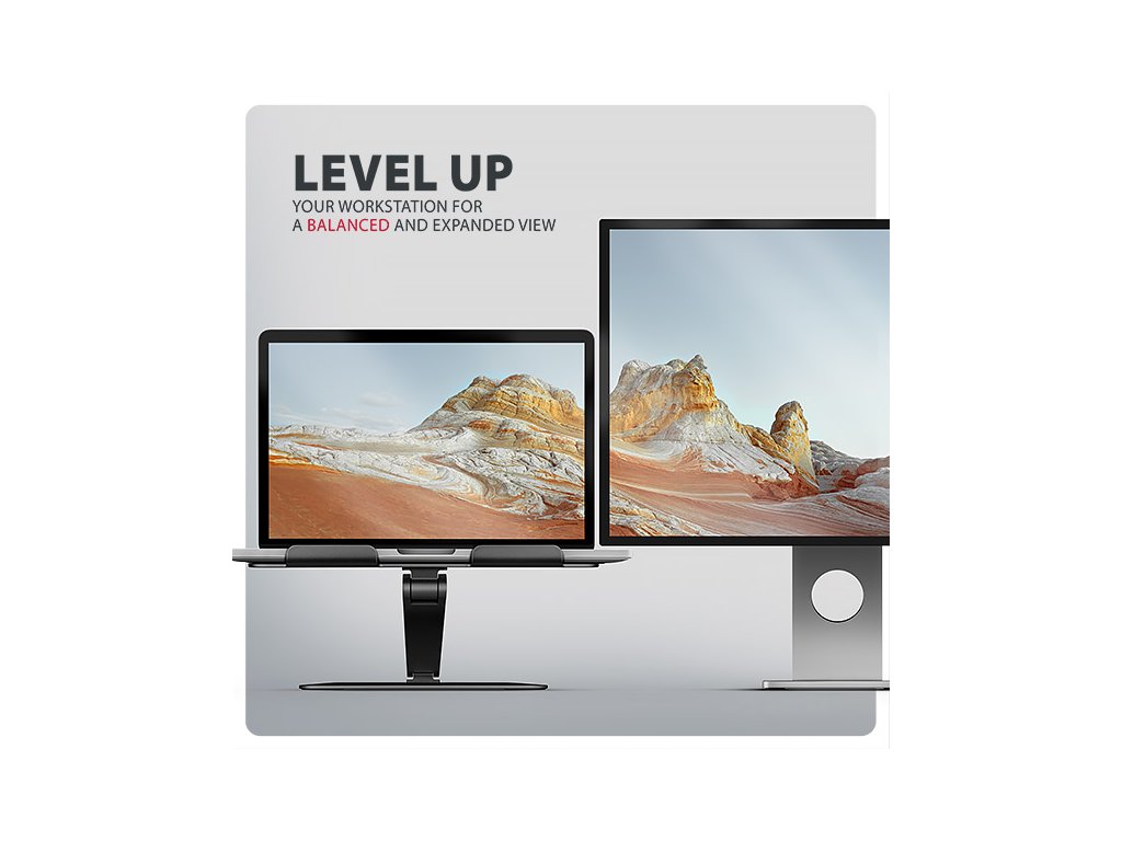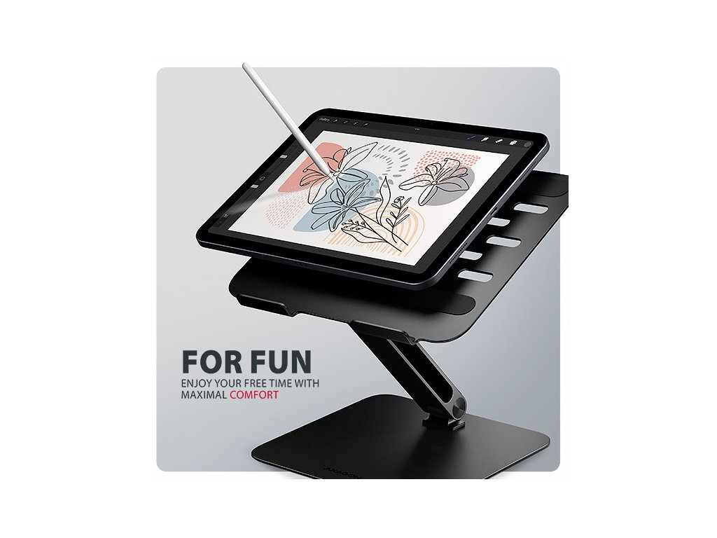 AXAGON STND-LRB, hliníkový stojan pre notebooky 10"-17.3" s nastaviteľnou výškou, uhlom a 360° rotáciou, čierny Axagon