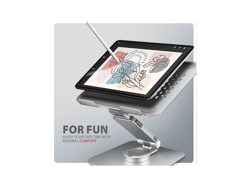 AXAGON STND-LR je stojan s 360° rotací, dvojitým kloubem a výsuvným ramenem, který zajišťuje maximální pohodlí a výrazně zlepšuje ergonomii při práci s notebookem nebo tabletem. Je určený pro zařízení od 10'' do 17.3'', umožňuje nastavit ideální výšku a úhel pro uvolnění krčních a zádových svalů. Díky 360° mechanismu a výsuvnému ramenu se dokonale přizpůsobí vašim potřebám ať už pracujete doma, v kanceláři, nebo na cestách. Kompaktní a přenosný design stojanu vám zajistí komfortní pracovní prostředí kdekoliv. 360° mechanismus umožňuje otočení celého ramene s notebookem okolo své osy. Tato funkce zajišťuje maximální flexibilitu – snadno změníte orientaci notebooku, aniž byste museli stojan přemisťovat. To oceníte zejména při práci v omezených prostorech, nebo při sdílení obrazovky notebooku při obchodních jednáních, poradách nebo prezentacích. Unikátní funkcí je výsuvné rameno s pojistkou proti uvolnění, které umožňuje jeho prodloužení až o 6 cm díky sedmi nastavitelným pozicím. Tímto způsobem snadno nastavíte notebook do optimální výšky a vzdálenosti od vašich očí přesně podle vašich potřeb. Chytré řešení s dvojitým kloubem poskytuje plynulé nastavení výšky obrazovky tak, aby byla v jedné rovině s vaším externím monitorem. Tím získáte další pracovní plochu ve správné úrovni očí, což výrazně zlepšuje ergonomii, zvyšuje pohodlí a zároveň podporuje vaši produktivitu. Podstavec pro notebook je vyroben z robustních hliníkových odlitků garantujících dlouhou životnost a spolehlivost. Díky protiskluzové úpravě zůstane vaše zařízení bezpečně na svém místě bez rizika nechtěných pohybů, aniž by došlo k jakémukoliv poškození povrchu notebooku nebo podložky. Tyto pečlivě navržené vlastnosti zaručují perfektní stabilitu pro váš notebook, tablet nebo oblíbenou knihu, což vám poskytne klid a pohodlí při každodenním používání. Stojan lze snadno složit do kompaktních rozměrů, což umožňuje pohodlné přenášení kamkoli potřebujete. Jeho elegantní design v šedé barvě stylově doplní váš pracovní stůl. Větrací otvory v podložce zajišťují optimální odvod tepla z vašeho notebooku, čímž zvyšují jeho výkon a životnost. Vlastnosti: • Lehká a pevná kovová konstrukce. • Protiskluzová úprava, která zároveň chrání zařízení od poškrábání. • Vhodný pro 10''–17.3'' notebooky nebo jiná zařízení. • Otočný mechanismus ramene (360° kolem své osy). • Nastavitelná výška až 260 mm. • Mnoho nastavitelných poloh. • Nastavení sklonu plochy pro notebook (0–180°). • Nastavení sklonu ramene (0–180°). • Nastavitelný výsuv ramene (0–60 mm, 7 pozic). • Nosnost dimenzována pro všechny typy notebooků, max. 5 kg. • Skladný a lehce složitelný. • Držák notebooku umožňuje lepší odvod tepla. • Rozměry: 260 × 232 × 58 mm (Š × H × V). • Hmotnost: 1095 g. Balení v kartonové krabičce obsahuje: • Stojan na notebook/tablet, • šedá verze provedení.
