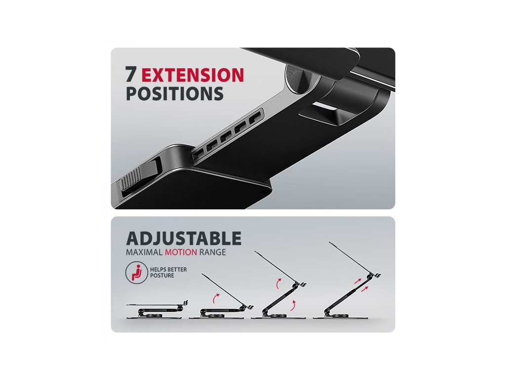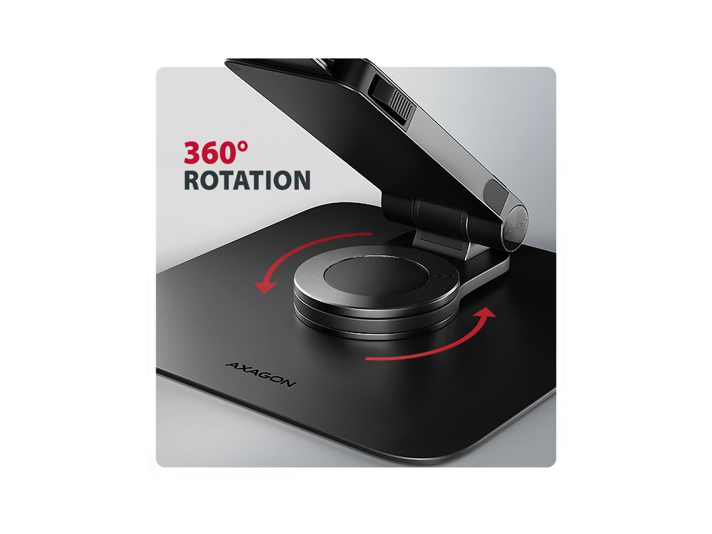 AXAGON STND-LRB, hliníkový stojan pre notebooky 10"-17.3" s nastaviteľnou výškou, uhlom a 360° rotáciou, čierny Axagon