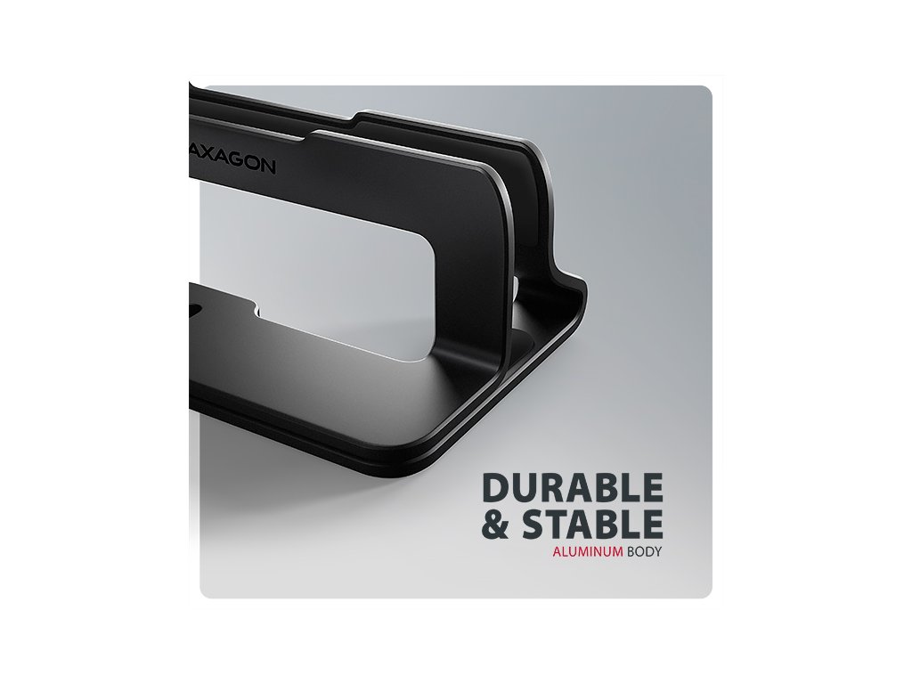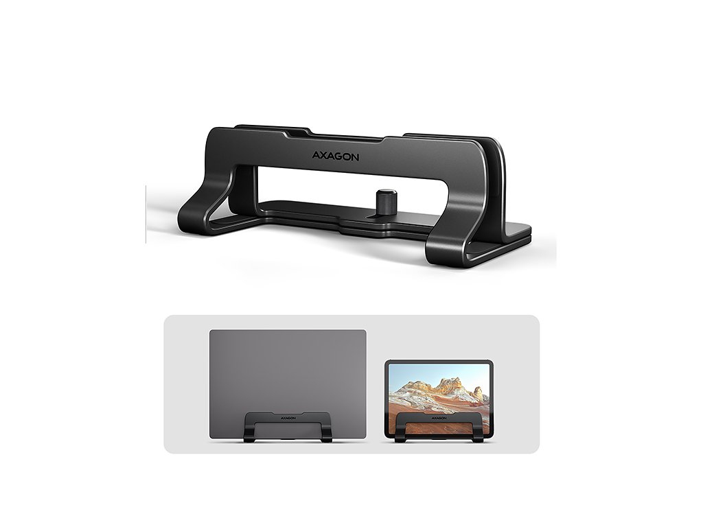 AXAGON STND-VB, vertikálny hliníkový stojan pre notebooky 10"-17.3, nastaviteľný rozostup, čierny Axagon