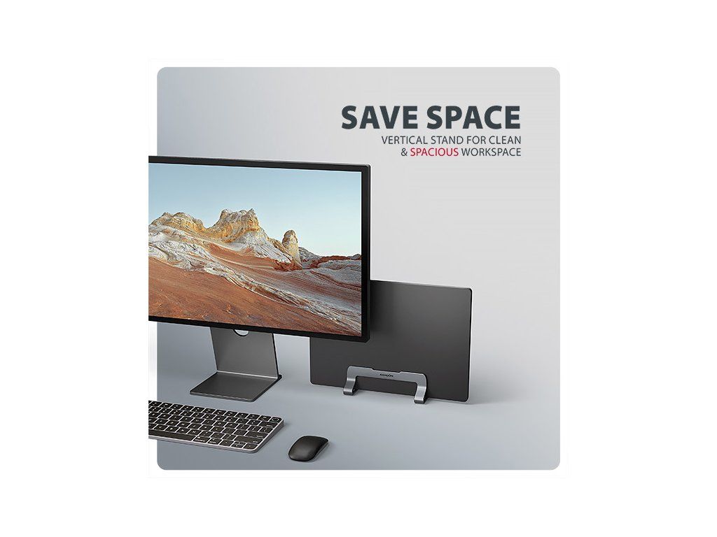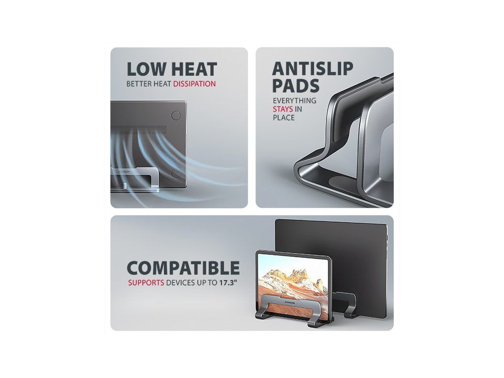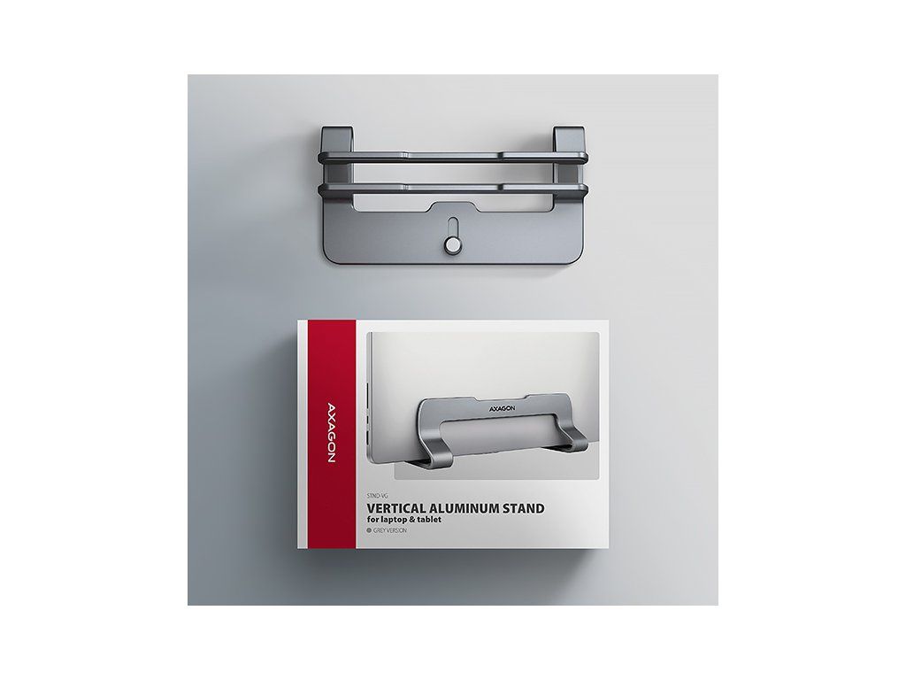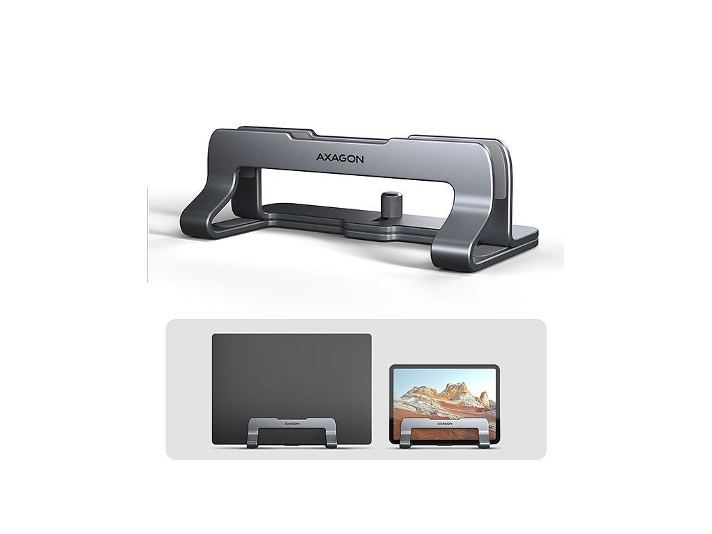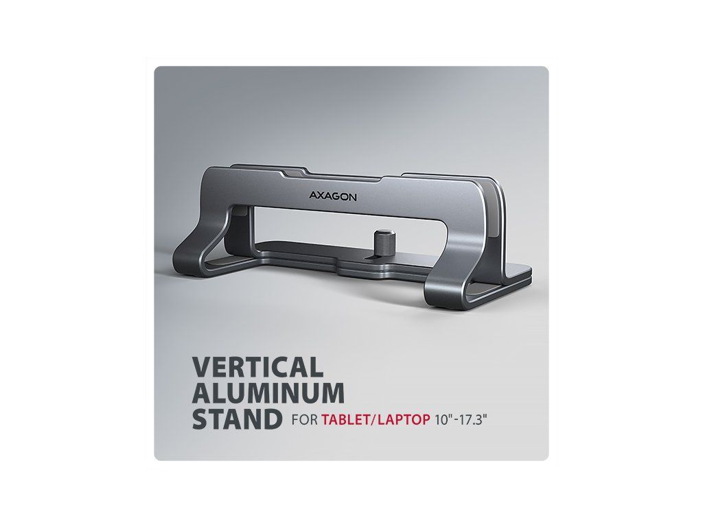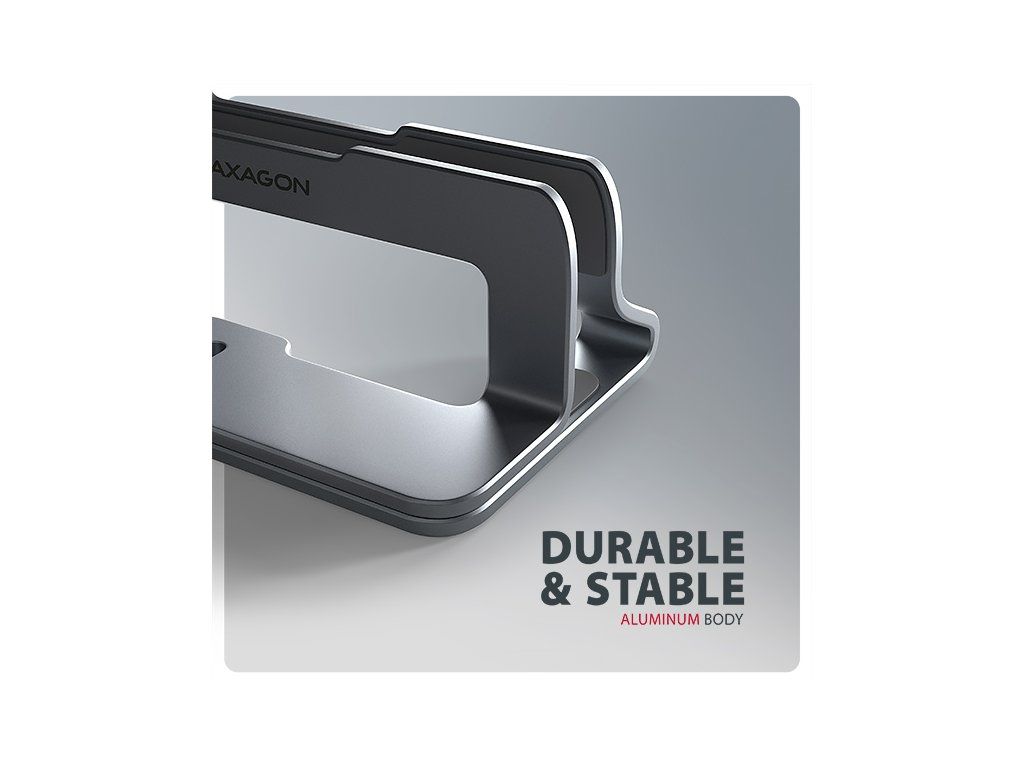 AXAGON STND-VG, vertikálny hliníkový stojan pre notebooky 10"-17.3, nastaviteľný rozostup, sivý Axagon