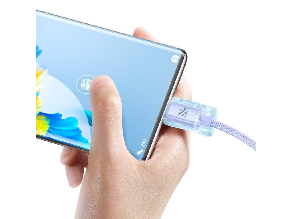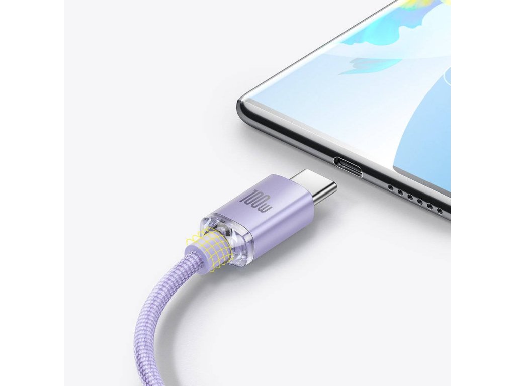 Baseus CAJY000405 Crystal Shine Series Dátový Kábel USB - USB-C 100W 1,2m Purple 6932172602826 NoName