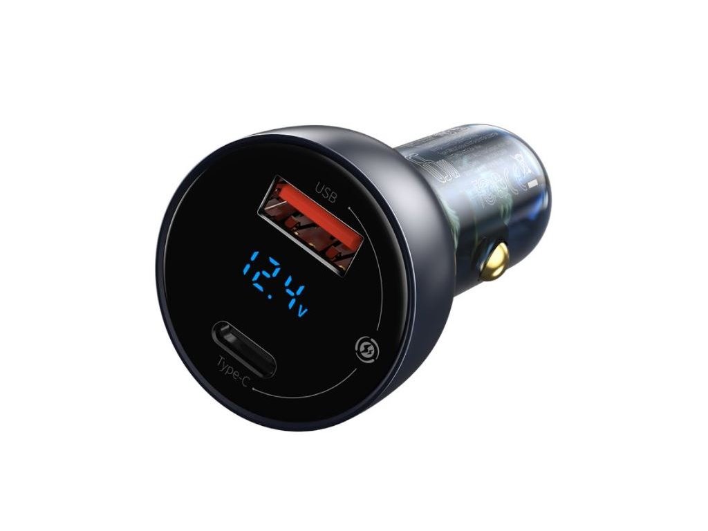 Baseus Particular Digital Display Dual USB nabíječka s výstupem USB a USB-C a LED displejem se stavem nabití akumulátoru ve voze a vysokým výkonem 65W. Nabíječka je vyrobena z atraktivního poloprůhledného ABS plastu. Podporuje nabíjecí proud 4.5V, 5V, 9V, 12V a 20V Specifikace - Model: VCKX65C - Materiál: Aluminum+ABS+PC - Pro vozy s 12-24V soustavou Výstupy - USB 4.5V/5A 5V/4.5A 5V/3A 9V/3A 12V/2.5A 20V/1.5A Max - USB-C 5V/3A 9V/3A 12V/3A 15V/3A 20V/3.25A Max. - Celkový výstup 18W+45W(63W) - Rozměry 34mm x 68mm - Hmotnost 38g
