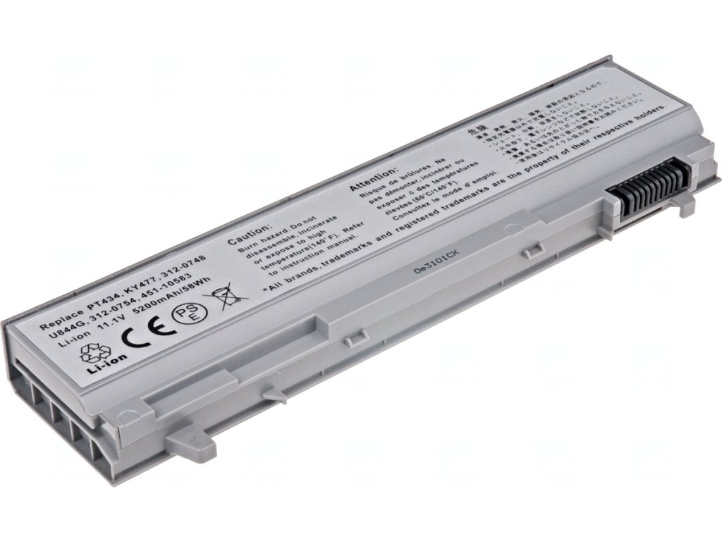 Typ: Li-ion Kapacita: 5200 mAh (58 Wh) Barva: šedá Napětí: 11.1 V Rozměry: 205.9x46.8x20.9 mm Hmotnost: 310 g Produktová čísla: 312-0748, 312-0753, 312-0917, 312-7414, 451-10583, 451-11399, 451-11443, C719R, FU268, FU272, GU715, KY265, KY266, KY466, KY477, NM632, PP27L, PT434, PT435, RG049, TX283, U844G, W04XF, W1193 Kompatibilní modely: Dell Latitude E6400, Dell Latitude E6400 ATG, Dell Latitude E6400 XFR, Dell Latitude E6410, Dell Latitude E6410 ATG, Dell Latitude E6500, Dell Latitude E6510, Dell Precision M2400, Dell Precision M4400, Dell Precision M4500