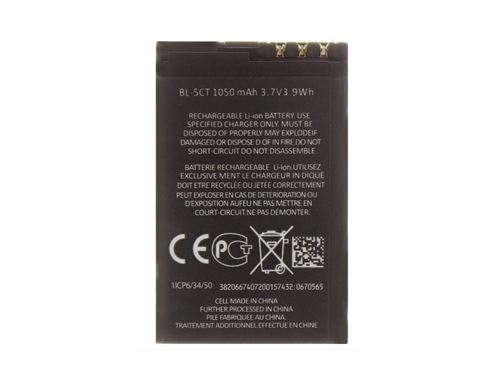 BL-5CT Baterie pro Nokia 1050mAh Li-Ion (OEM) Nokia 3720c, 5220 XM, 6303c, 6303c Illuvial, 6730c, C3-01Touch and Type, C5, C6-01. Nejedná se o originální baterii.