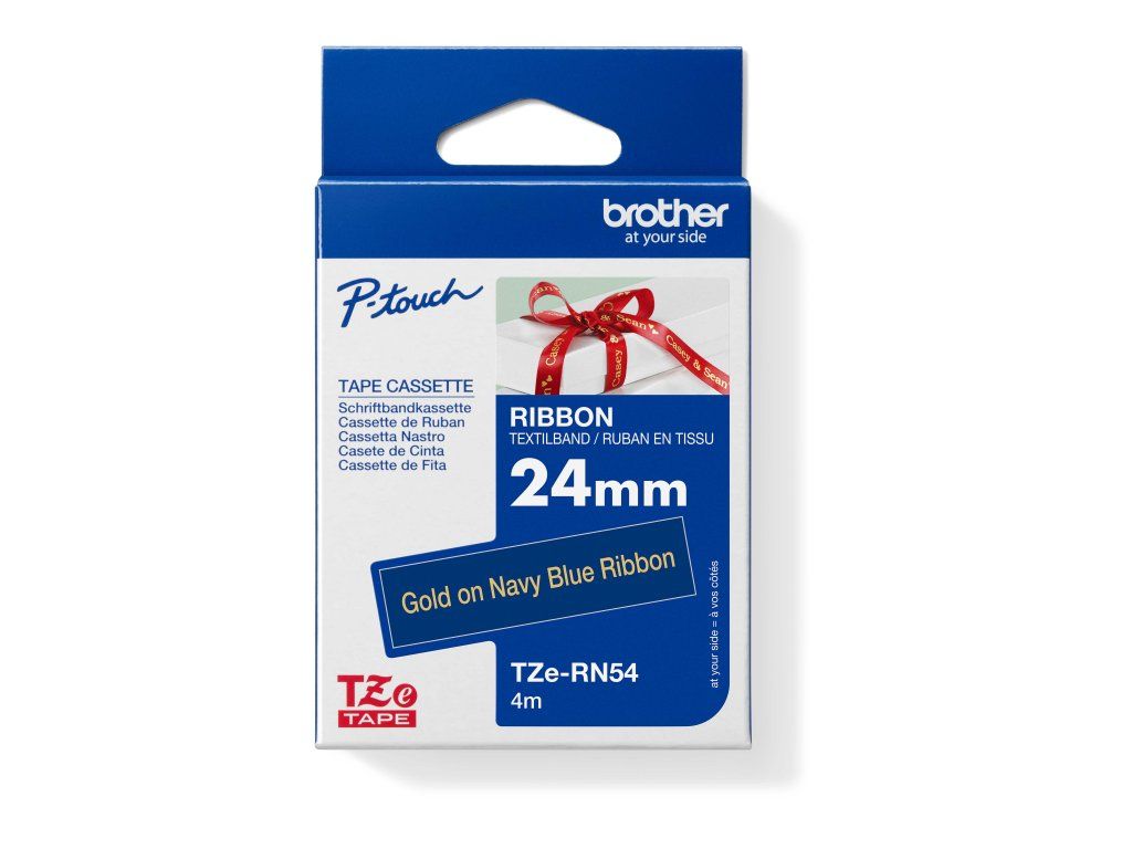 Originální pásková kazeta Brother TZe-RN54 - zlatý tisk na tmavě modré, šířka 24 mm Vložte svou osobnost do karet a dárků použitím pásky Brother TZe-RN54 se zlatým tiskem na tmavě modrém podkladu. Ať už se jedná o zvláštní příležitost, nebo si jen chcete přidat něco navíc jako vklad své osoby, tyto luxusní textilní stuhy vám poskytují nejlepší způsob, jak ozdobit dárky. *Šířka 24 mm, délka 4 m *Textilní stuha na dárky a řemeslné výrobky *Vysoce kvalitní originální kazeta Brother *Snadno čitelné výtisky Tato textilní stuha bez lepící vrstvy s luxusním lesklým povrchem je ideální pro balení dárků a řemeslných výrobků.
