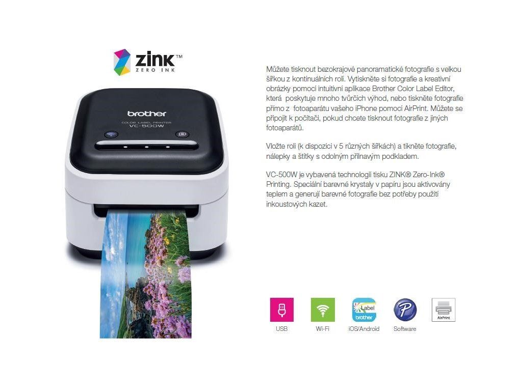 Tlačiareň štítkov BROTHER FOTO - VC500W - WIFI, USB, farebná bez atramentu - integrovaná rezačka VC500WZ1 Brother
