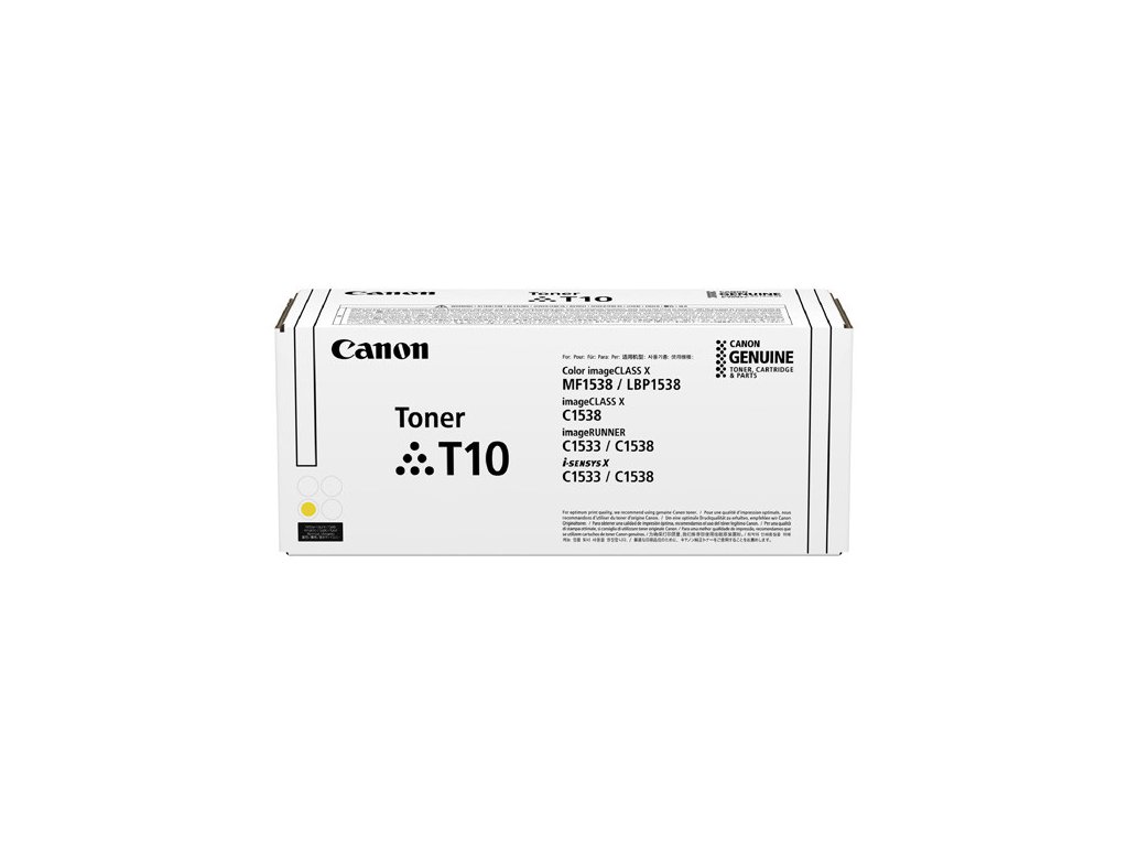Originální toner Canon T10 Yellow (4563C001), žlutý, 10 000 stran Kompatibilní s: Canon imageCLASS X LBP1538 Canon i-SENSYS X C1533P Canon imageRUNNER C1538iF Canon imageRUNNER C1533iF Canon i-SENSYS X C1533iF II Canon i-SENSYS X C1538P Canon imageCLASS X MF1538