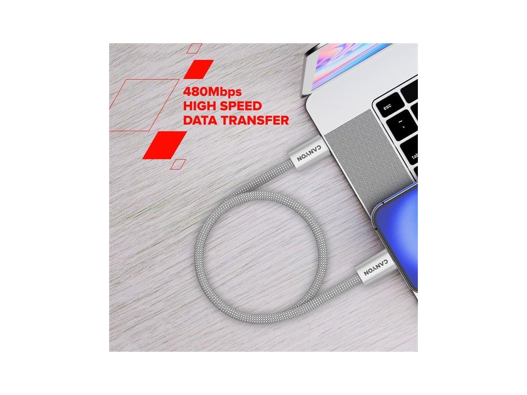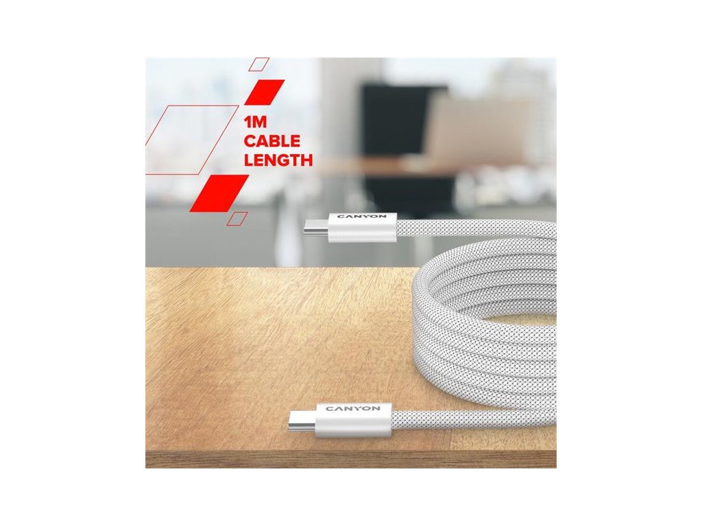 Canyon CCMG60AB15, 1 m kábel, USB-C / USB-C, magnet, PD 60 W, opletený, biely CND-CCMG60AB15W