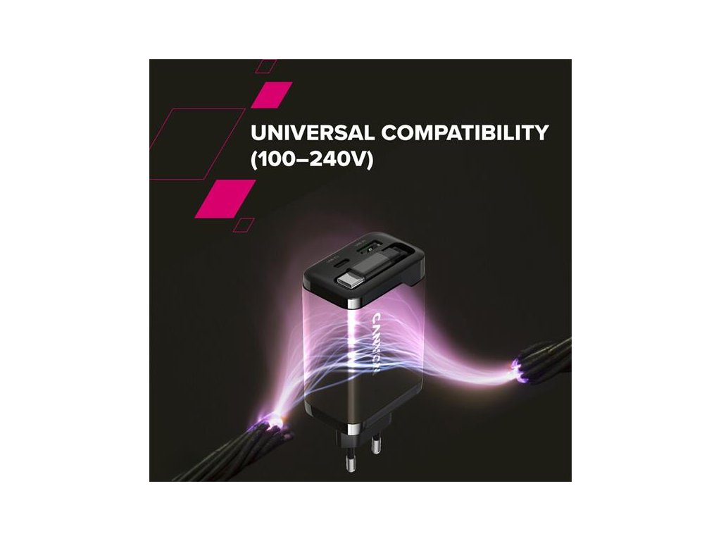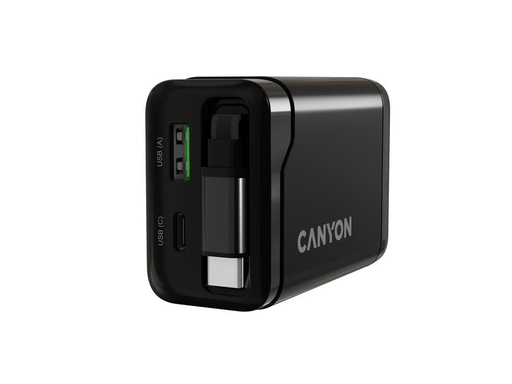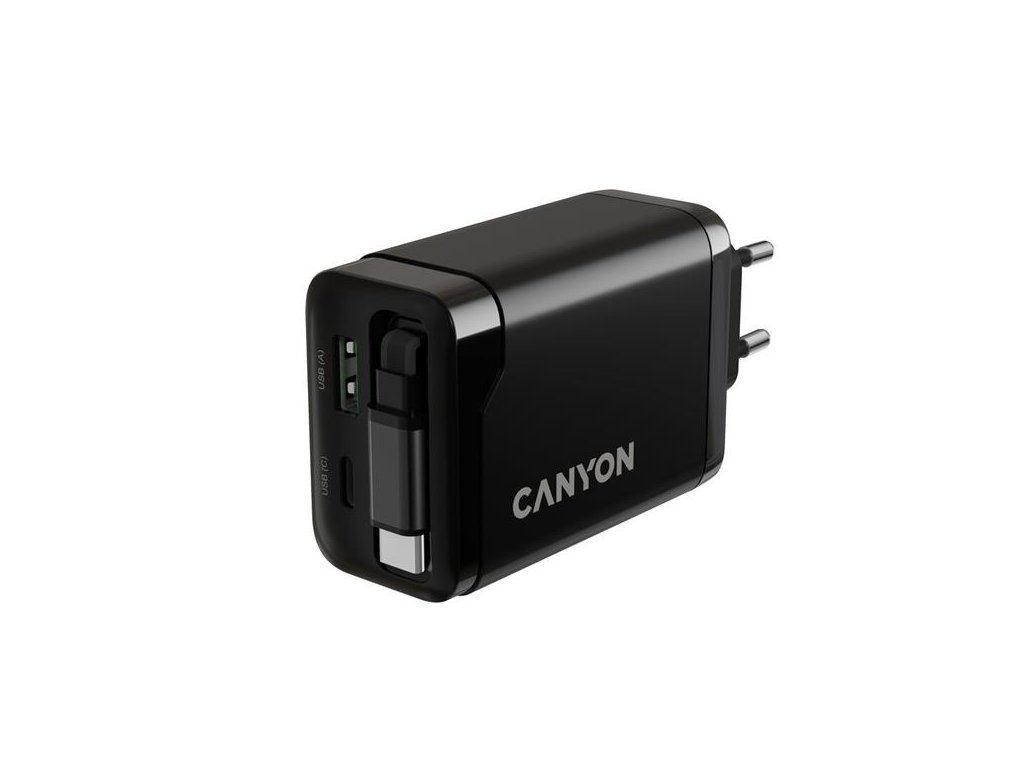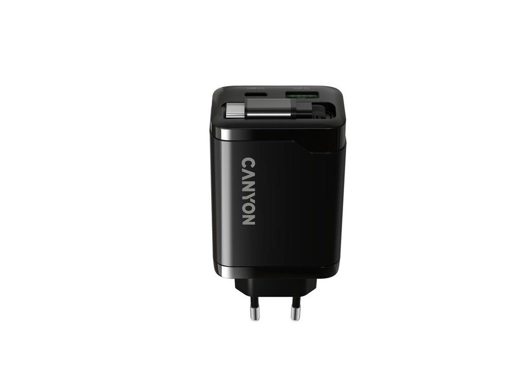 Canyon CNS-CURC65ACB, vysokorýchlostná univerzálna nabíjačka do steny s integrovaným 68 cm USB(C) káblom