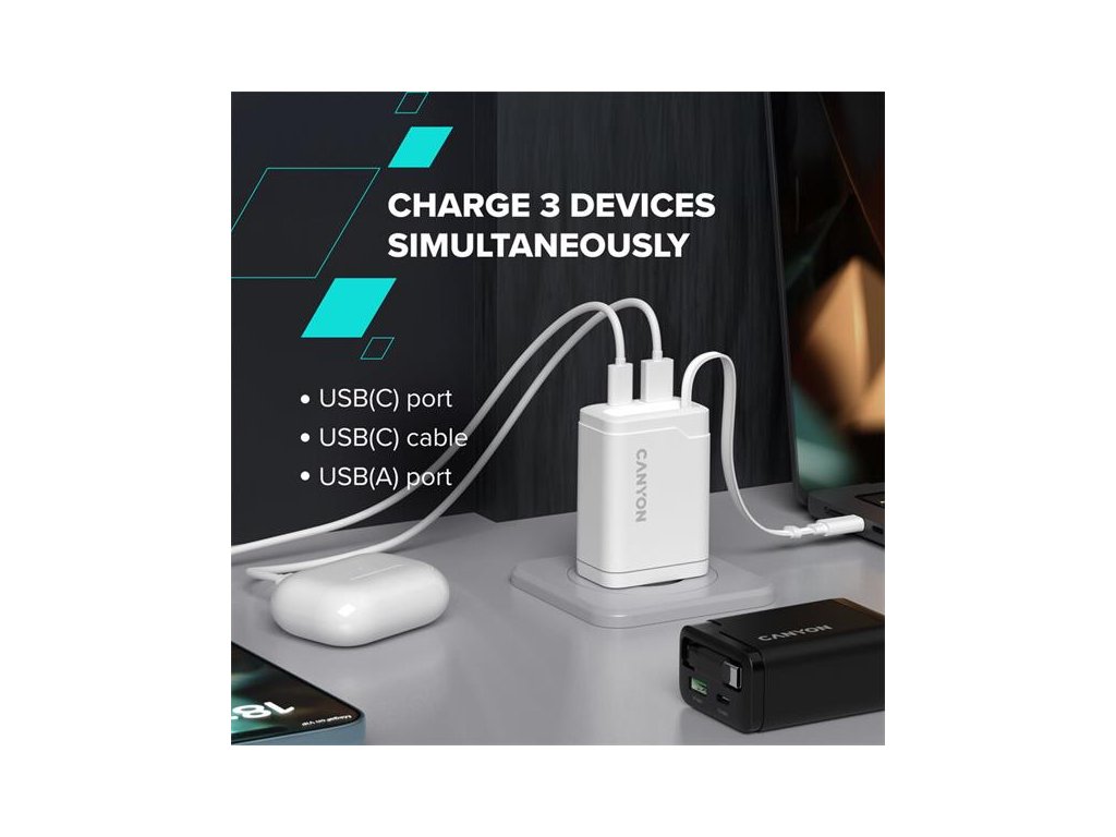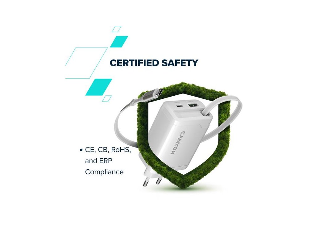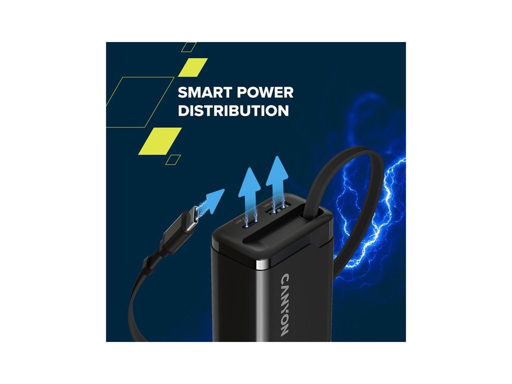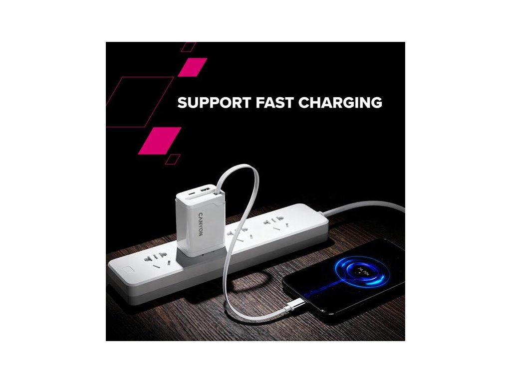 Canyon CNS-CURC65ACB, vysokorýchlostná univerzálna nabíjačka do steny s integrovaným 68 cm USB(C) káblom