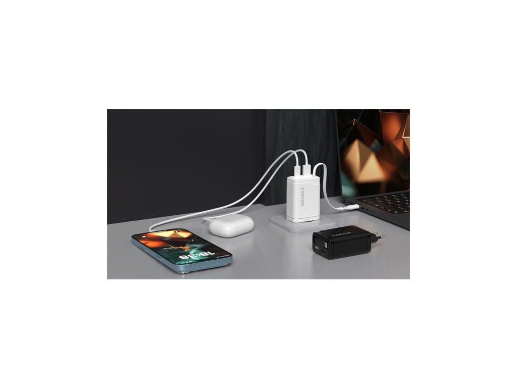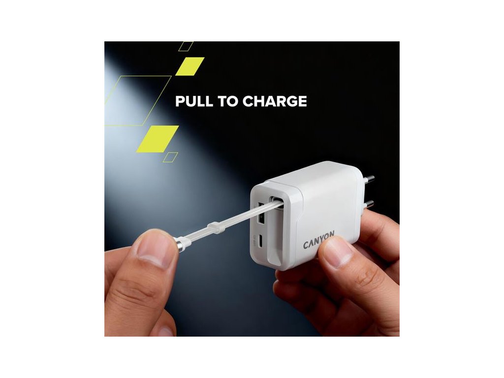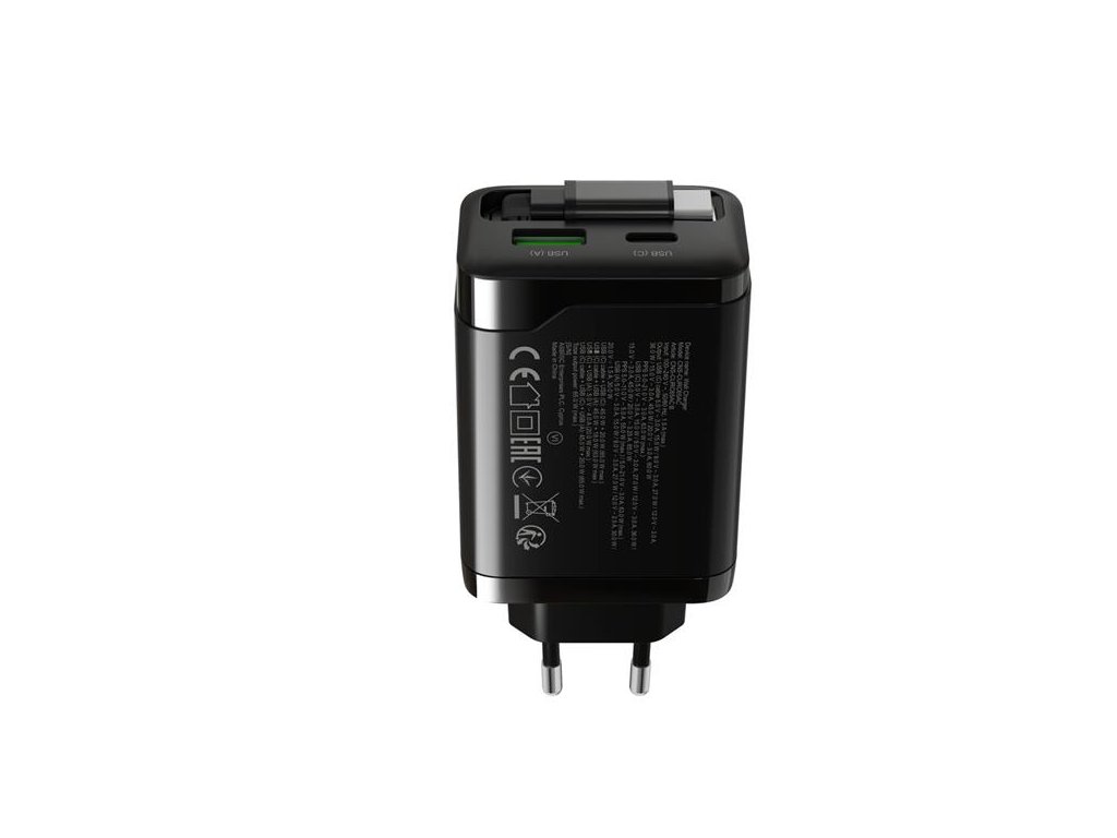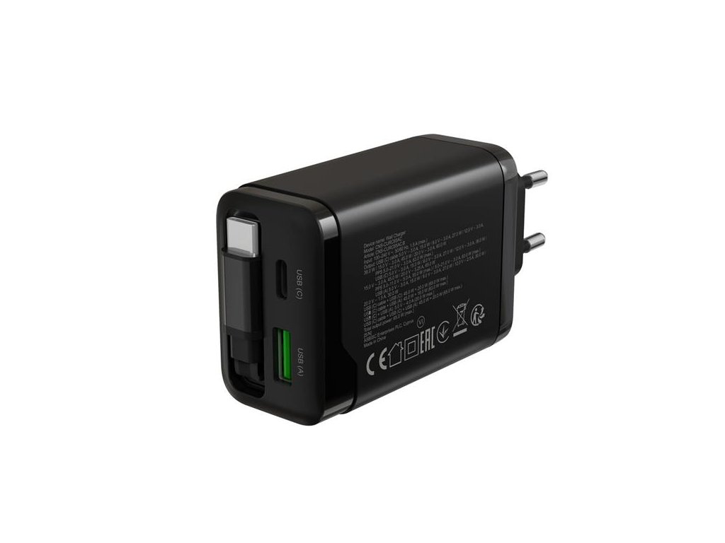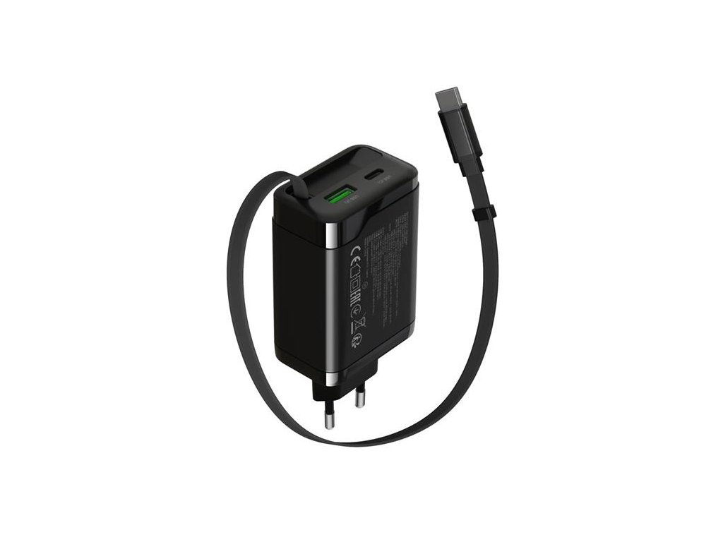 - Funkcie napájacieho adaptéra a zdroja :GaN technológia, Power Delivery, Quick Charge, Vysúvateľný USB-C kábel