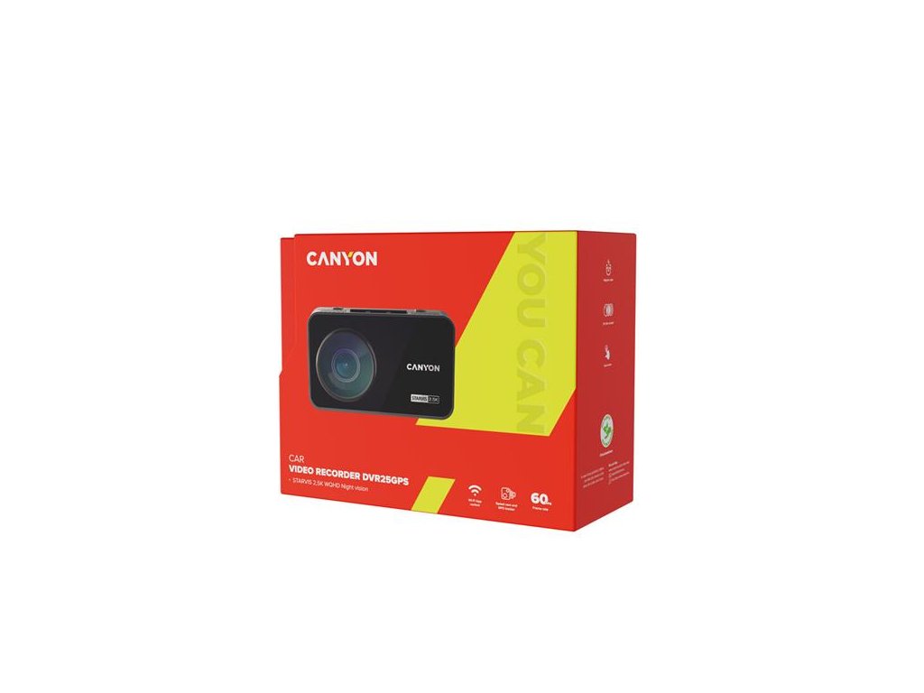 Canyon DVR25 GPS, kamera do auta s nahrávaním, GPS, 2.5K WQHD at 30 fps, 3´´ dotykový displej CND-DVR25GPS