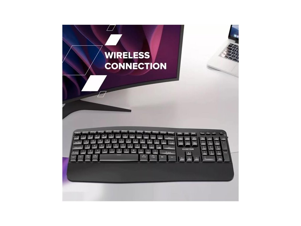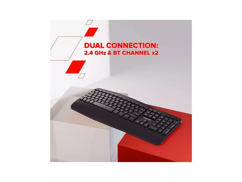 Canyon HKB-W6, 2v1 bezdrôtová 2.4GHz/BT klávesnica, ergonomická s opierkou, vodeodolná, 104 klávesov, SK/CZ, čierna CNS-HKBW6-CS