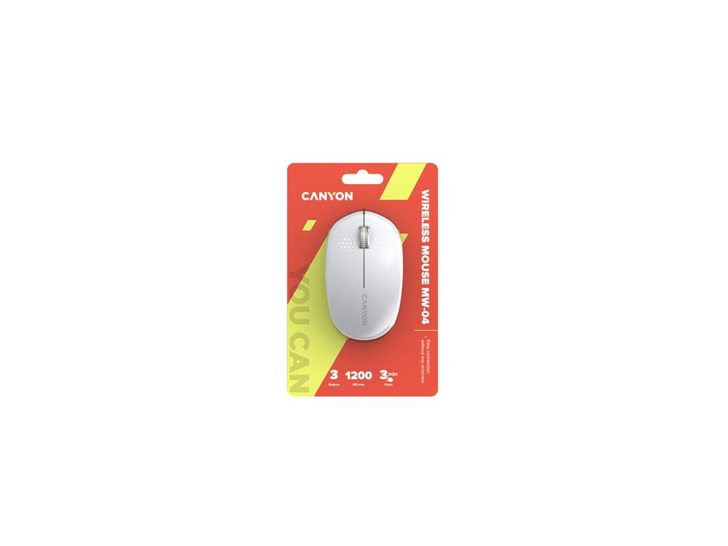 Canyon MW-04, Bluetooth optická myš, 1200 dpi, 3 tlač, 1x AA, úspora energie, biela CNS-CMSW04W