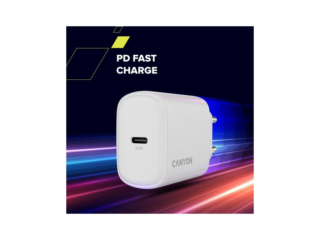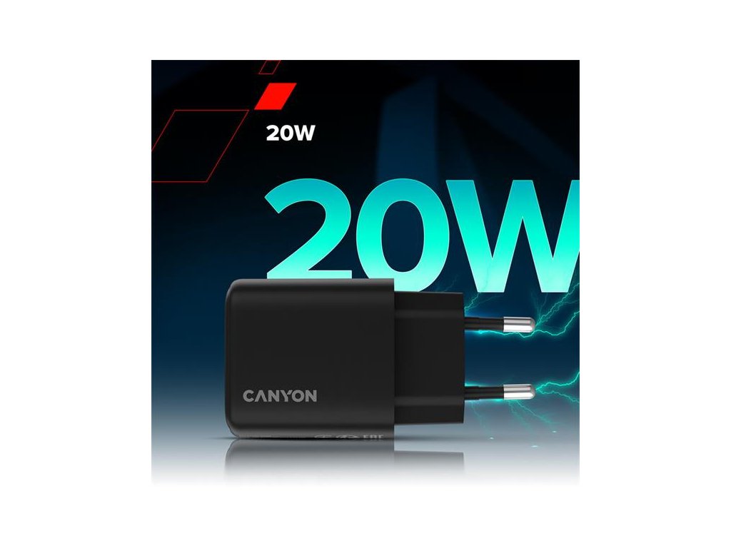Canyon OnCharge 200, univerzálna nabíjačka do steny, 1x USB-C, PD 20W, čierna CNE-CHA200-11
