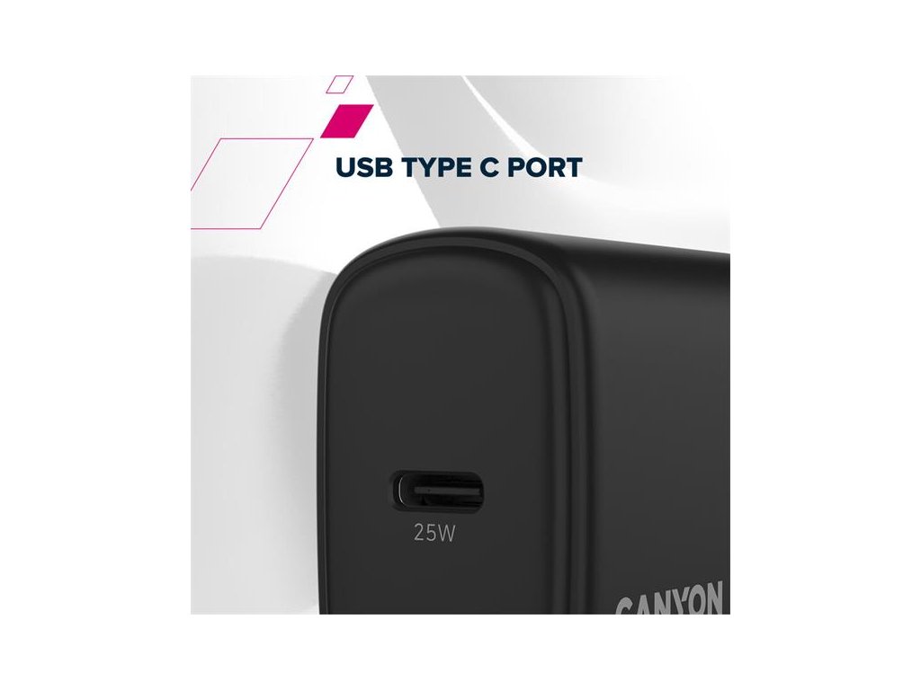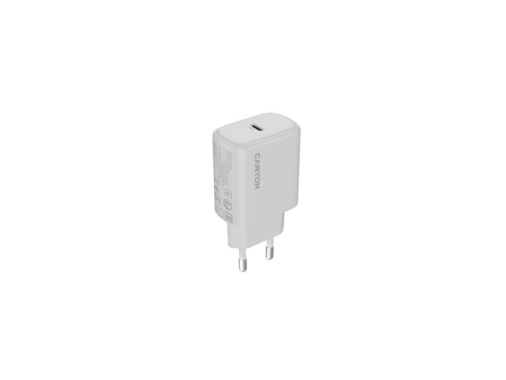 Canyon OnCharge 250, univerzálna nabíjačka do steny, 1x USB-C, PD 25W, biela CNE-CHA250-01