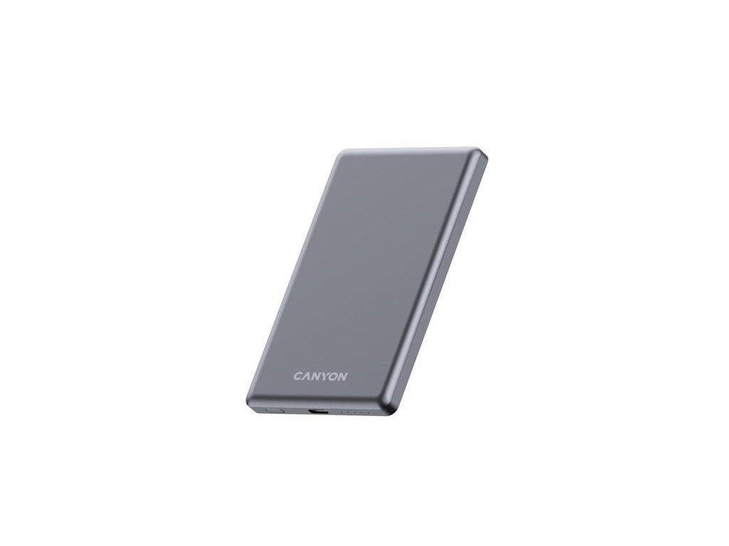 Canyon OnCharge 505, Powerbank, 5.000 mAh, in: USB-C, out: USB-C PD 20W + Wireless Magsafe 15W, ultratenká, šedá CNS-CPB505DG