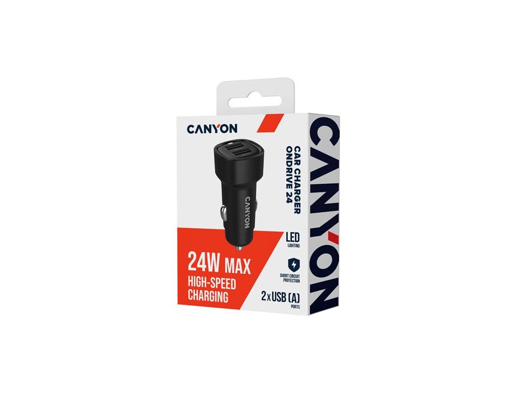 Canyon OnDrive 24, univerzálna autonabíjačka, 2x USB-A, výkon 24 W CNE-CCABR2AA