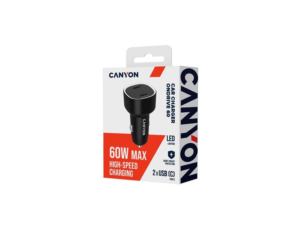 Canyon OnDrive 60, univerzálna autonabíjačka, 2x USB-A, rýchle nabíjanie, výkon 60 W CNE-CCABR3CC