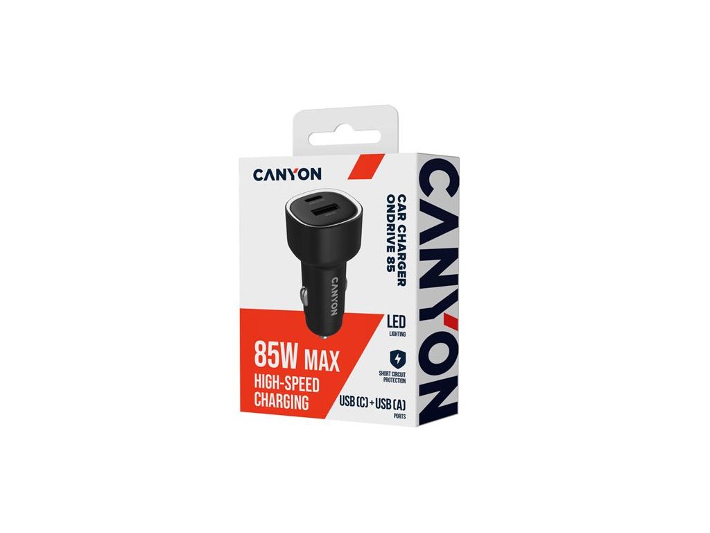 Canyon OnDrive 85, univerzálna autonabíjačka, 1x USB-C, 1x USB-A, rýchle nabíjanie, výkon 85 W CNE-CCABR8AC