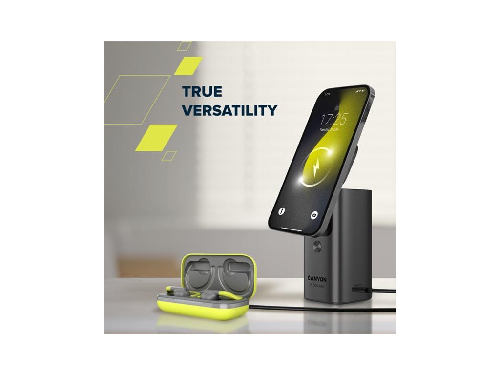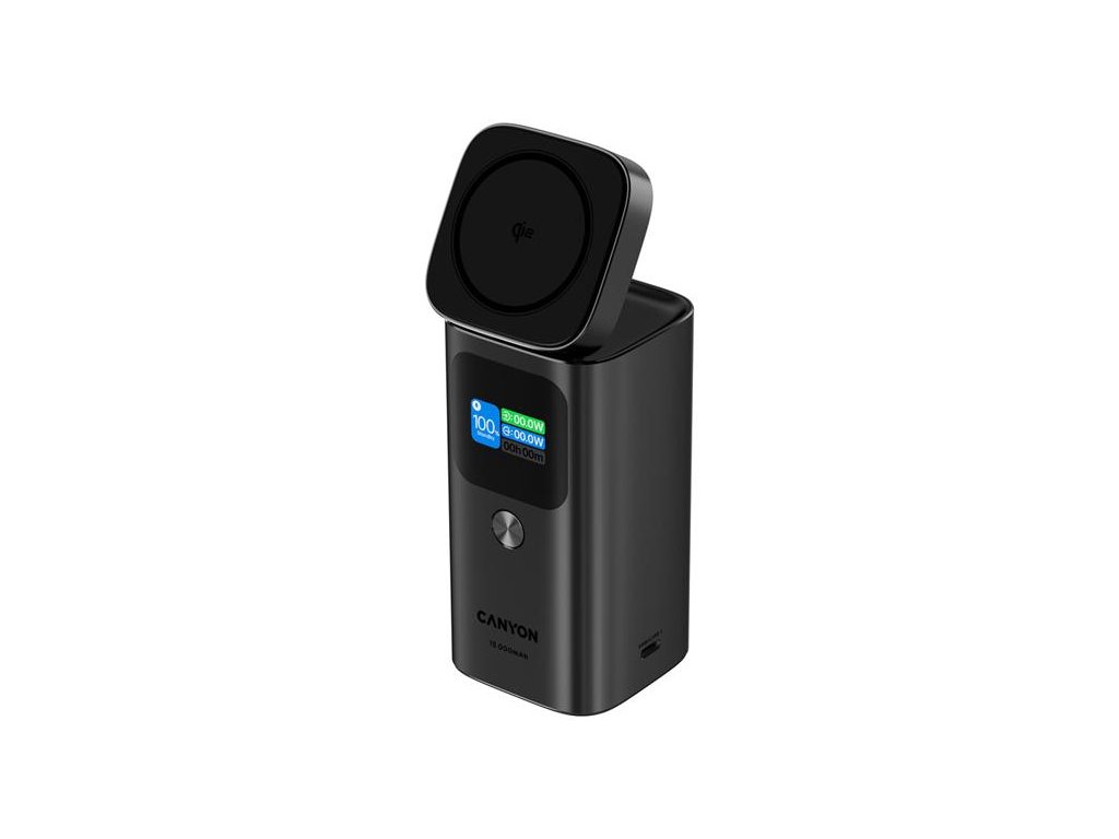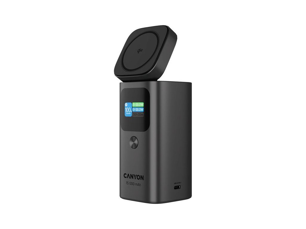 Canyon OnPower 150, Powerbank, 15.000 mAh, 100W, displej, in:USB-C, out:2x USB-C/1xUSB-A, Qi2 bezdr. nabíjanie CNS-CPB150DG