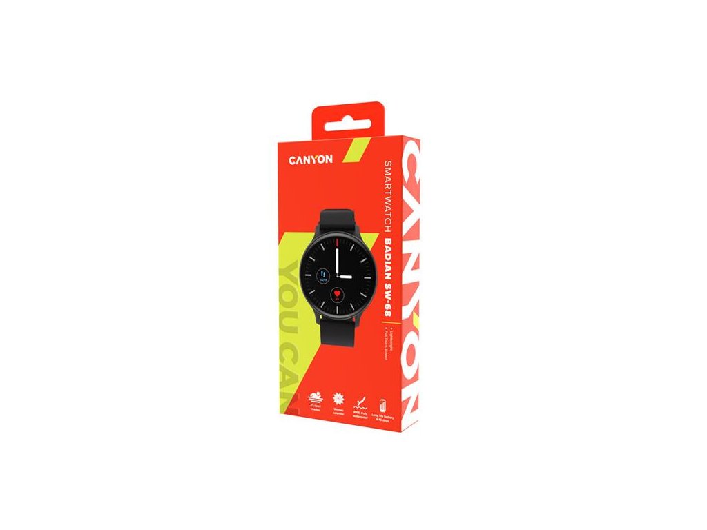 Canyon SW-68, Badian smart hodinky, BT, fareb. LCD displej 1.28´´, vodotes. IP68, 22 športov, čierne CNS-SW68BB