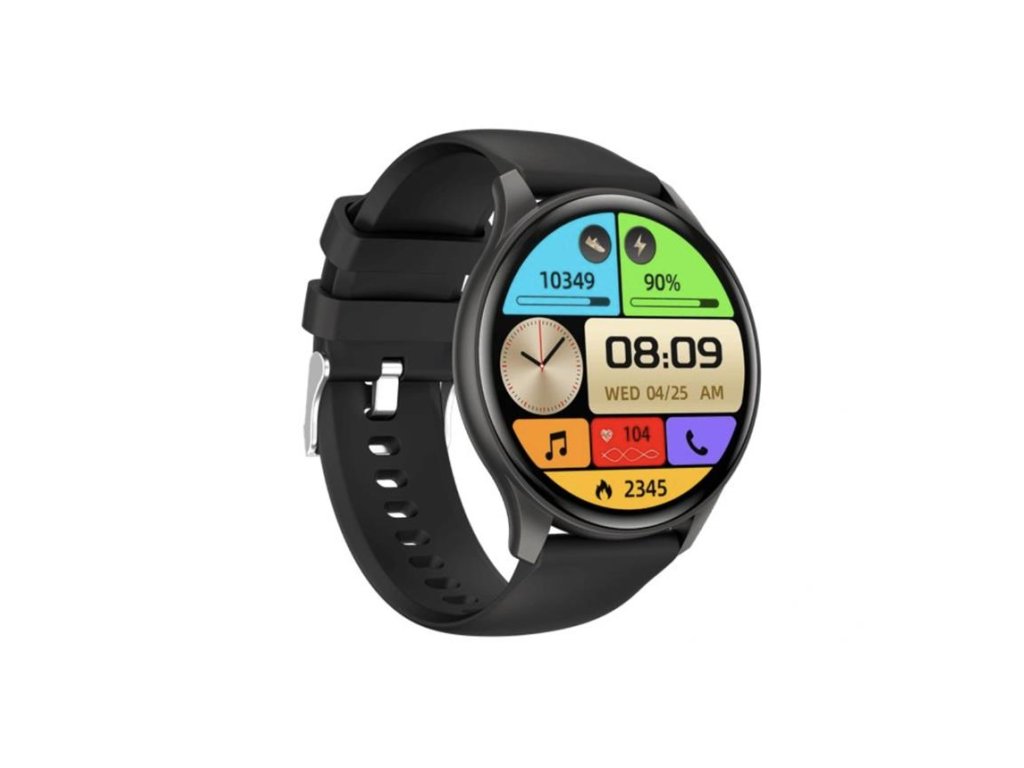 Moderné fitness smart hodinky Carneo Gear+ Essential druhej generácie v elegantnom čiernom prevedení disponujú okrúhlim SUPER AMOLED farebným displejom.