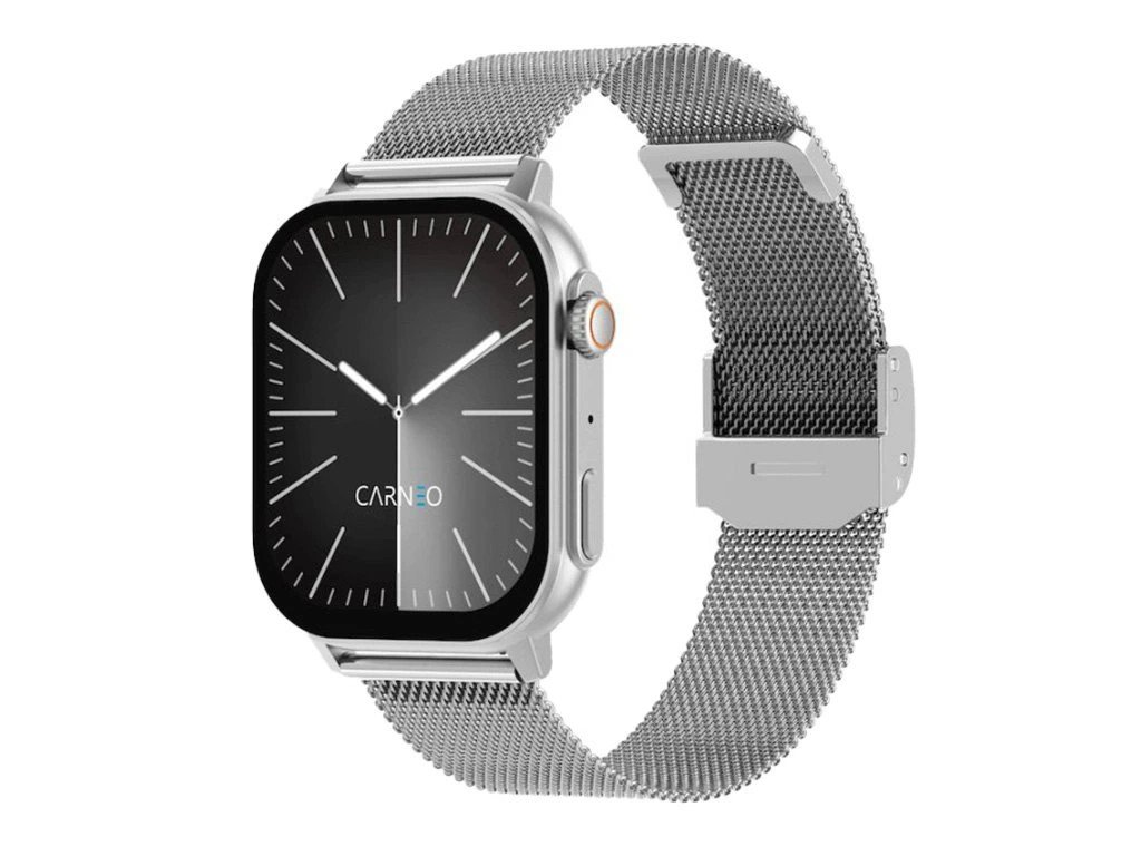 Moderní, designově propracované fitness hodinky CARNEO Zephyr Ultra HR+ ve stříbrné barvě se stříbrným, kovovým, pleteným řemínkem a barevným SUPER AMOLED displejem s vysokým jasem a funkcí trvalého zobrazení času. Monitorují vaši denní aktivitu, úroveň stresu a lze je spárovat s mobilním telefonem díky čemuž Vás upozorní na příchozí hovor nebo textovou zprávu. Hodinky umožňují telefonovat, aniž byste museli telefon vyndat z tašky, díky vestavěnému mikrofonu a reproduktoru až do vzdálenosti 10 m od telefonu. Jejich bezchybné kovové tělo s nadčasovými outdoorovými křivkami je tak návykové, že je po prvním nošení nebudete chtít sundat ze zápěstí. Tvrzené minerální sklo ochrání jejich křišťálově čistou obrazovku před poškrábáním. Hodinky jsou dodávány se silikonovým řemínkem v šedé barvě příjemným na dotek, který jim dodává sportovní vzhled. Vkusný outdoorově-luxusní design se snadno kombinuje k obleku či volnočasovému outfitu. Hodinky i aplikace jsou kompletně v češtině, takže si budete jistě spolu dobře rozumět. Operační systém: IOS a Android Displej - úhlopříčka [palce]: 2,04'' dotykový AMOLED Displej - rozlišení [pix]: 368 x 448 Materiál řemínku: Kovový, pletený/ Silikonový náramek Materiál hodinek: Kov Velikost hodinek: 40 x 46 mm Tloušťka hodinek: 10 mm Šířka řemínku: 22 mm Konektivita: Verze Bluetooth: V 5.2 Voděodolnost: IP 67 Měřené veličiny: *Krokoměr: ano *Měření vzdálenosti: ano *Měření krevního tlaku: ano *Měření okysličení krve: ano *Měření spálených kalorií: ano *Kardio index: ano *Úroveň stresu: ano *Výpočet BMI: ano *Monitor Spánku: ano *Energie těla: ano *Aplikace: Carneo FIT v českém jazyce *Přehrávání hudby: Ovládání hudebního přehrávače v mobilním telefonu Baterie: Kapacita [mAh]: 280 mAh Životnost baterie: 7 dní Hmotnost [g]: 38 g Obsah balení: *1 x Chytré hodinky CARNEO Zephyre Ultra HR+ *1 x Magnetický napájecí kabel *1 x Uživatelská příručka