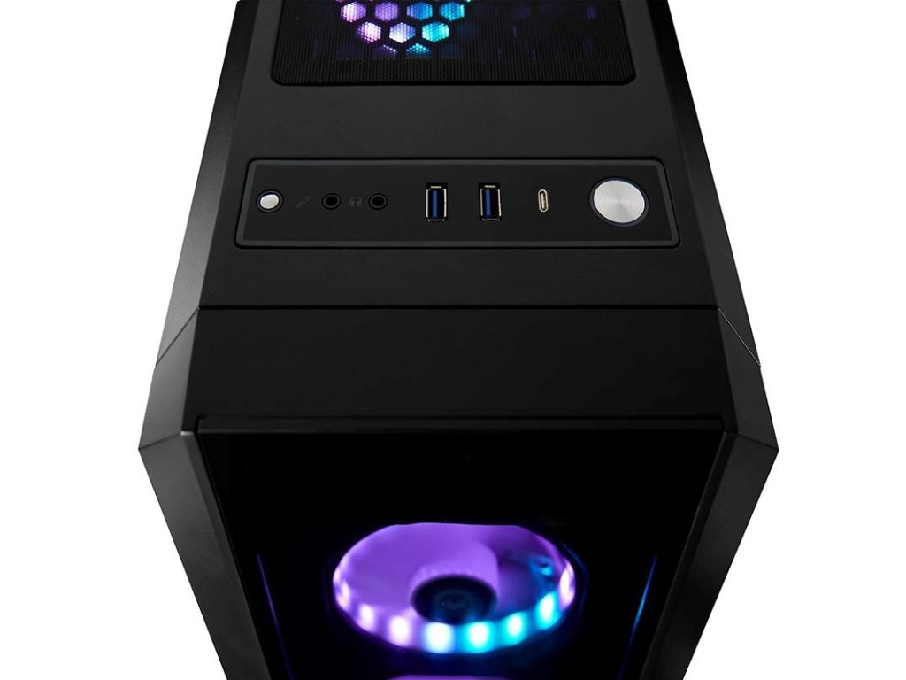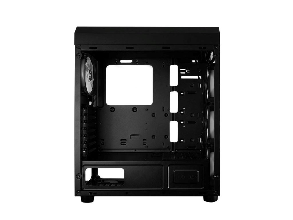 Prevedenie skrine:Midi Tower; Farba skrine:Čierna; Počet pozícií 3.5" (HDD):2; Počet interných pozícií 2.5":2; Vybavenie PC skrinky:Predný Audio panel, Predný USB panel, Priehľadná bočnice