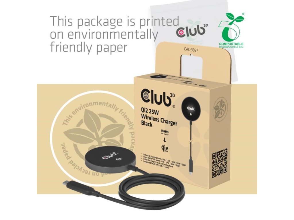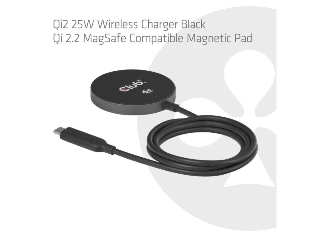 Club3D Bezdrátová nabíječka, 1x Qi2 25W, MagSafe, Qi certifikováno, černá CAC-3027 Club 3D