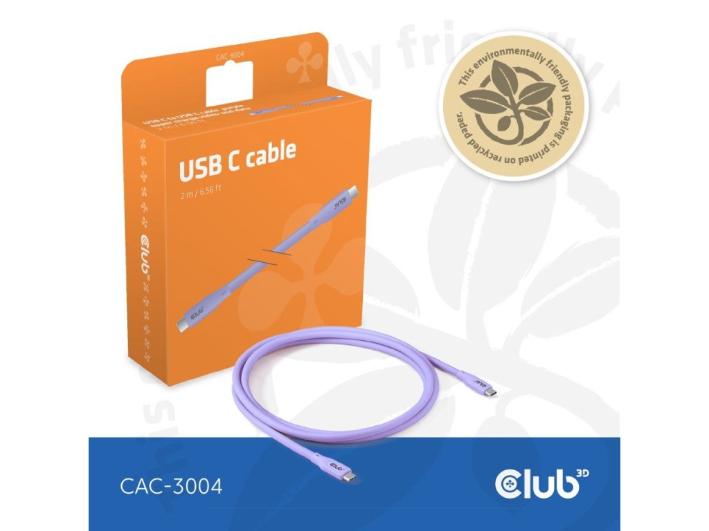 Club3D Kabel USB-C 4.0, 20Gbps, 4K60Hz, PD 240W, 2m, fialová CAC-3004 Club 3D